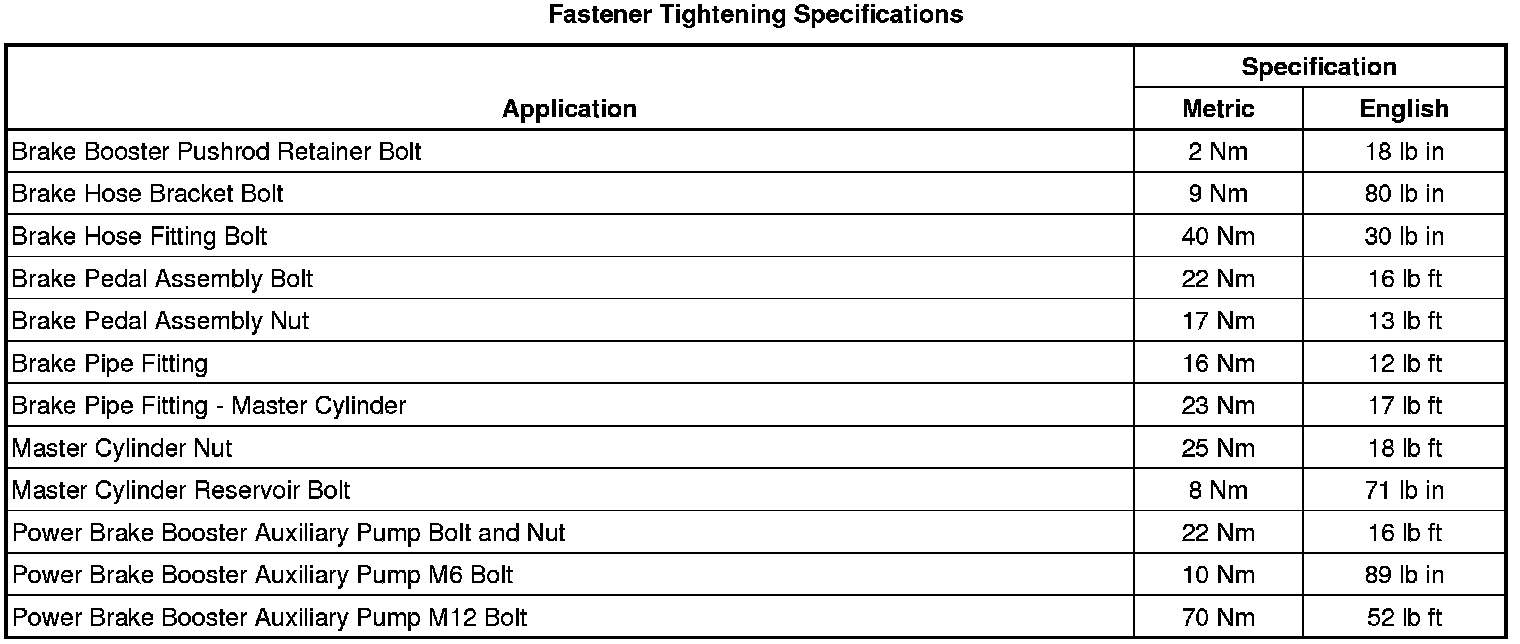 Fastener Tightening Specifications