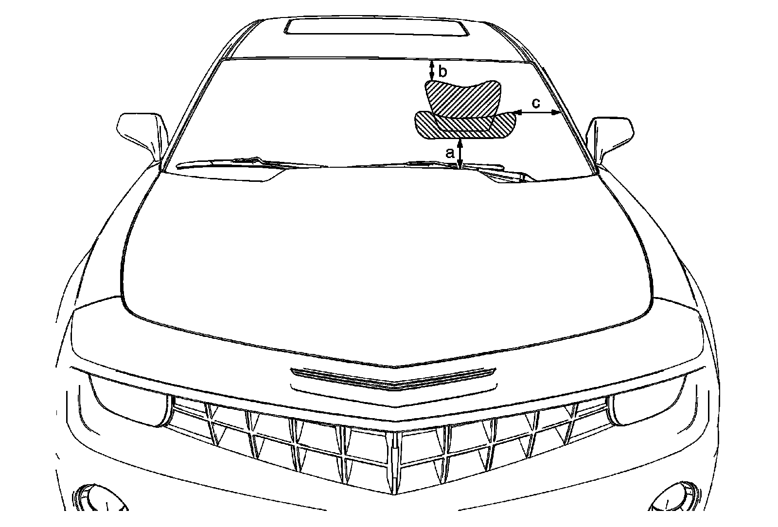 1. The first measurement (a) is from the top of the C-line molding, at the windshield washer nozzle, vertical, up the windshield either from the passenger side or driver side.