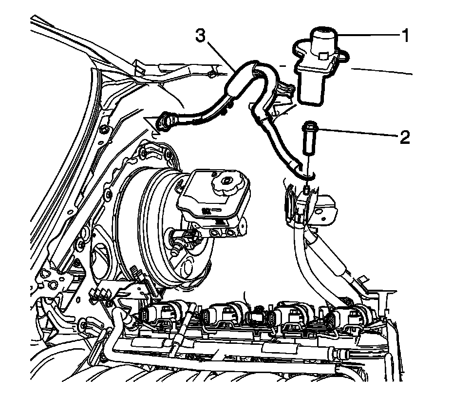 4. Remove the battery positive cable extension cable (3) from the engine compartment.