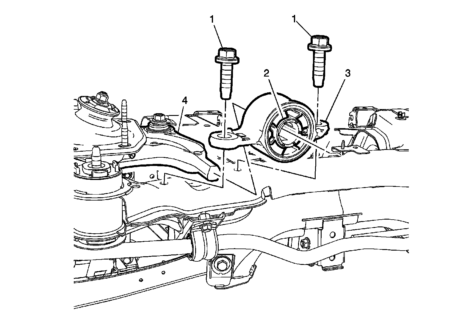 2. Install the upper control arm pivot bushing bracket to subframe retaining bolts (1).