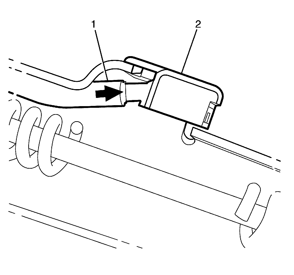 1. Connect the washer hose (1) onto the washer nozzle (2).