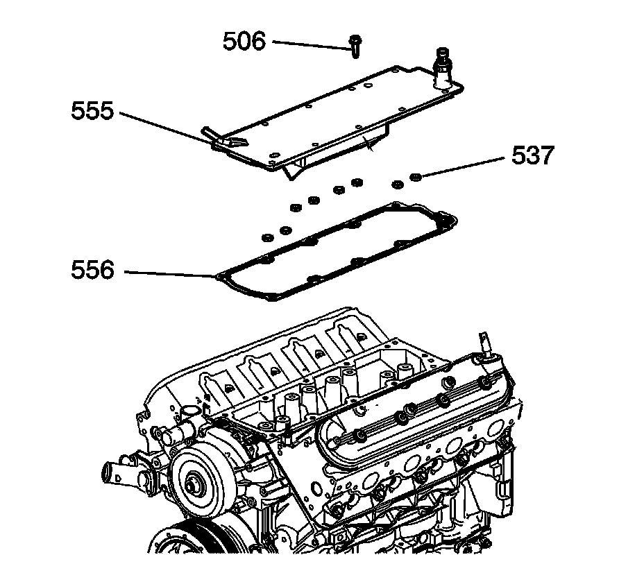 3. Install the cover (555), gasket (556), and bolts (506). Tighten the cover bolts to 25 Nm (18 lb ft).