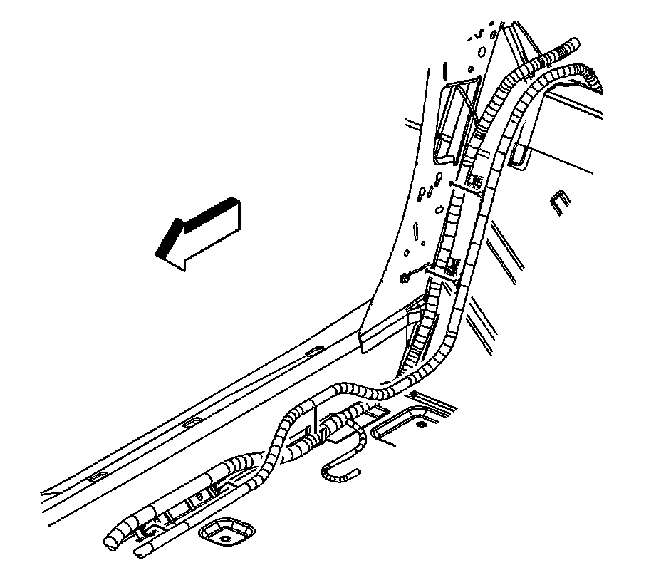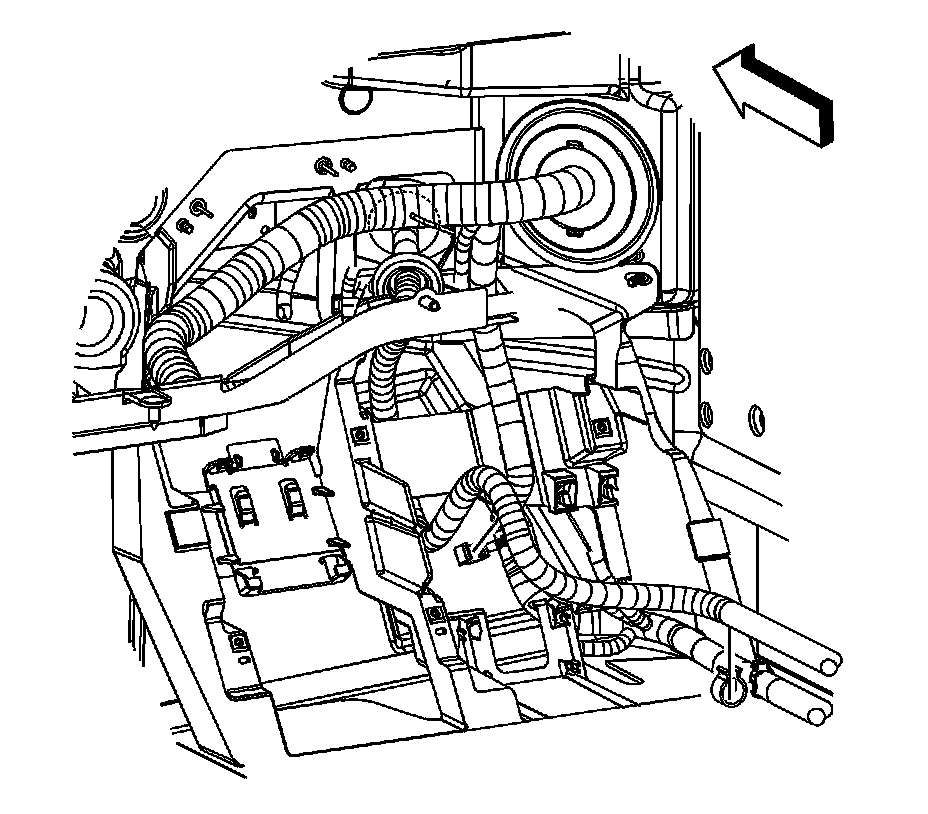 4. Remove the passenger rear compartment front side trim panel. Refer to Rear Compartment Side Trim Panel Replacement Rear Compartment Side Trim Panel Replacement.