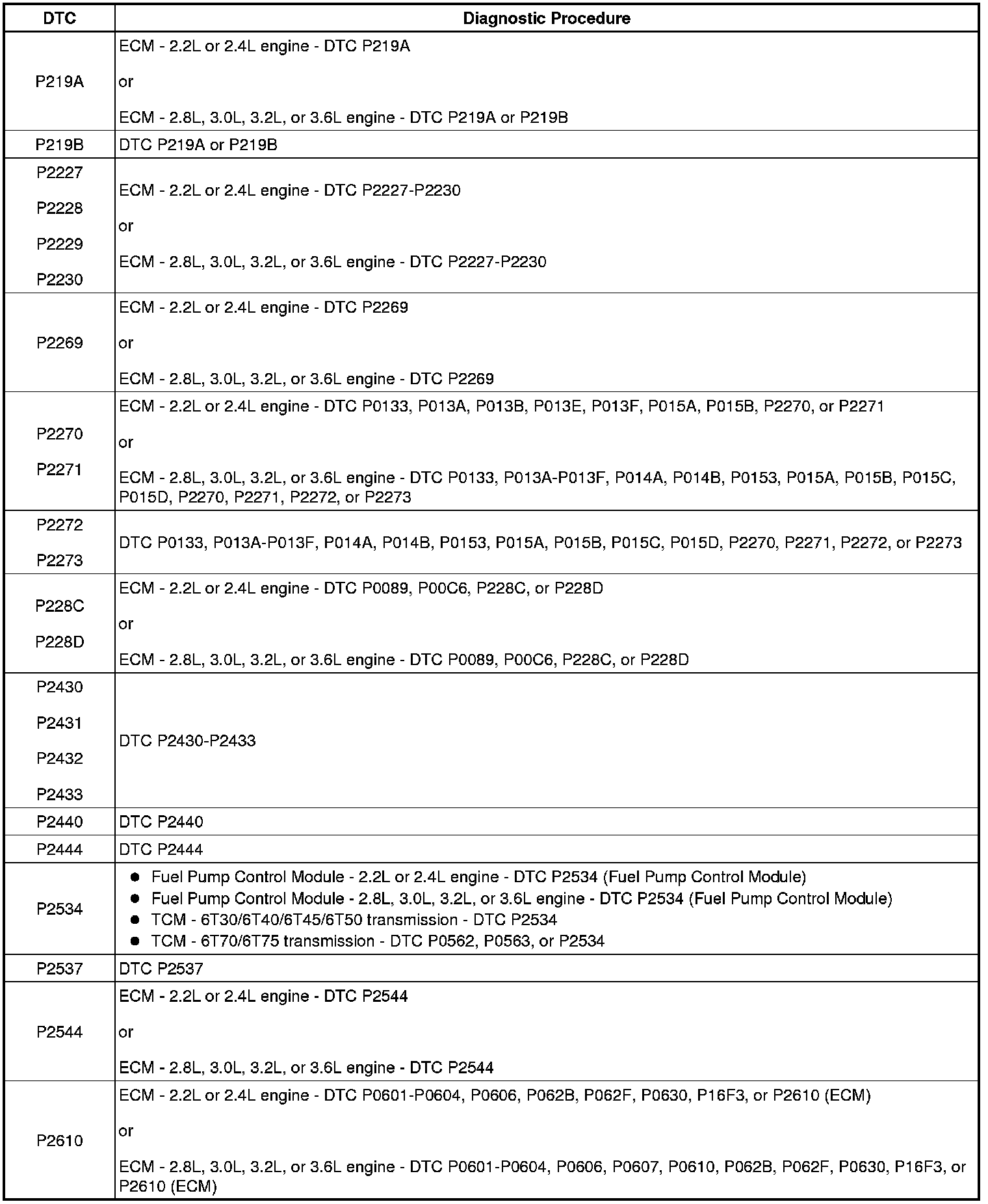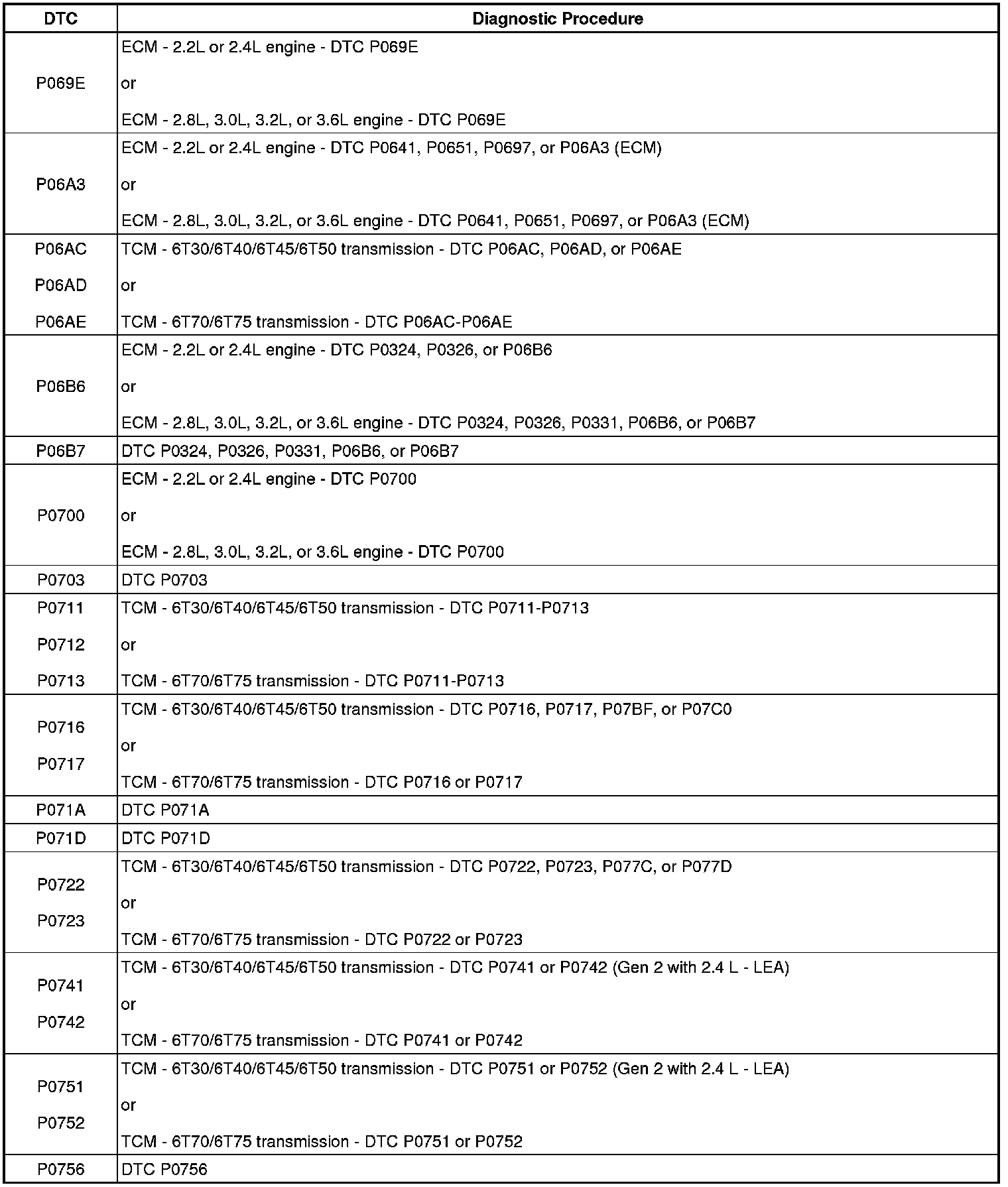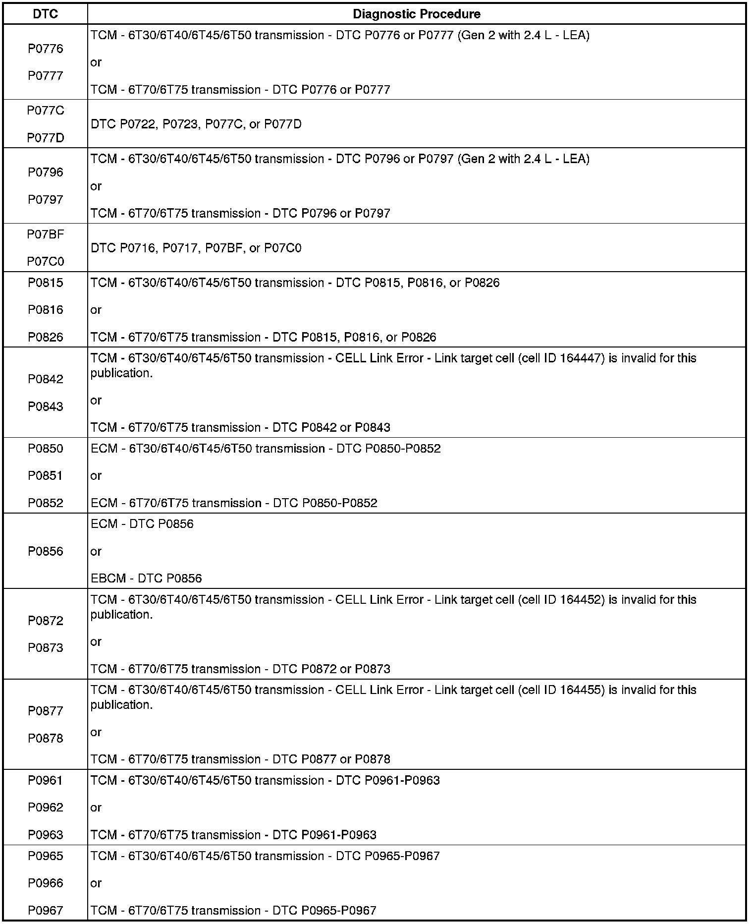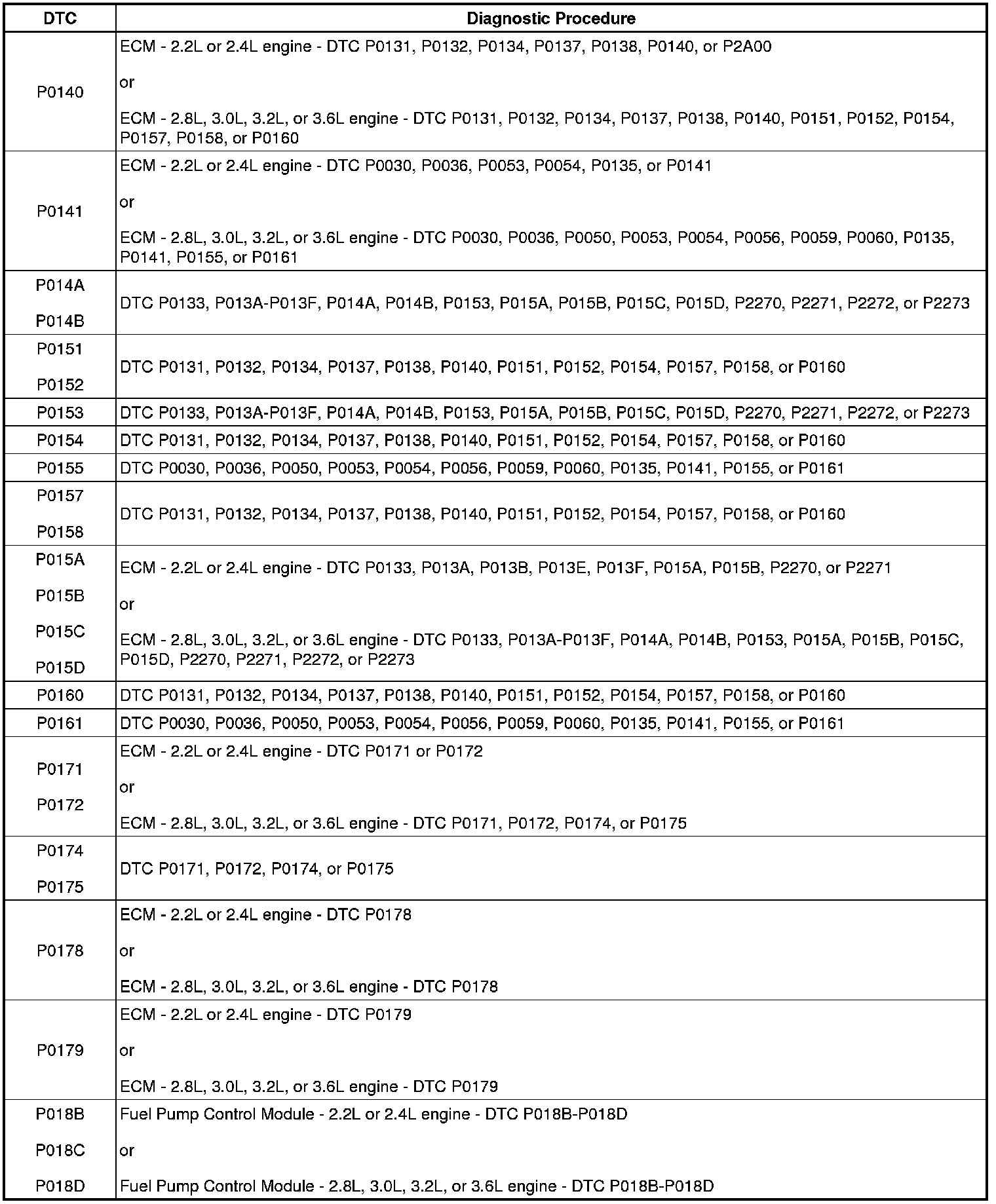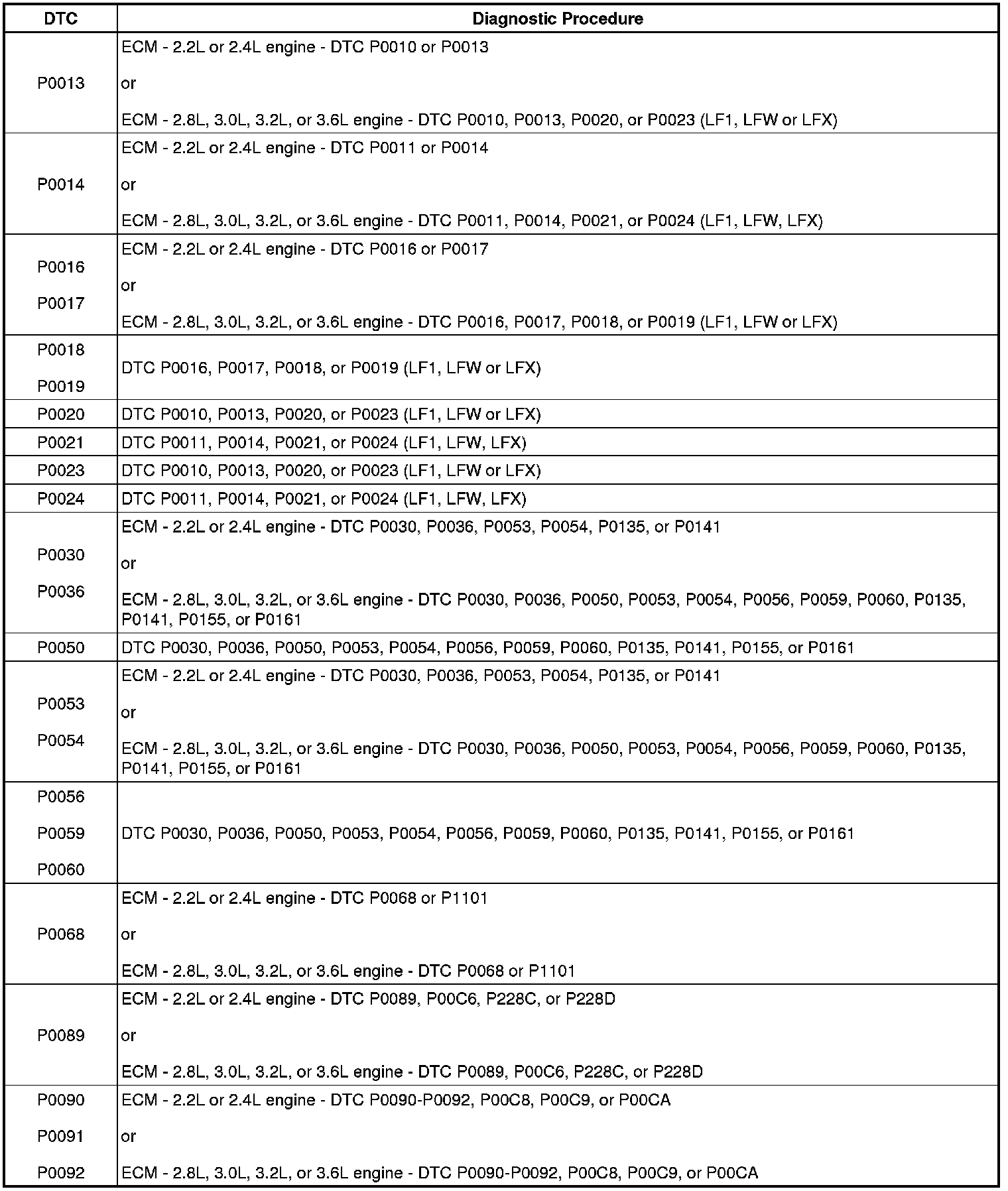 This master DTC list includes all applicable DTCs in alphanumeric order.