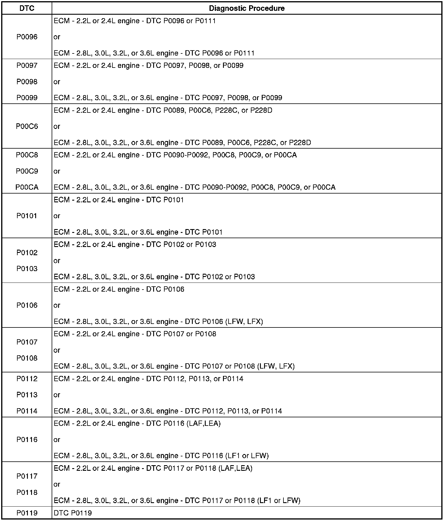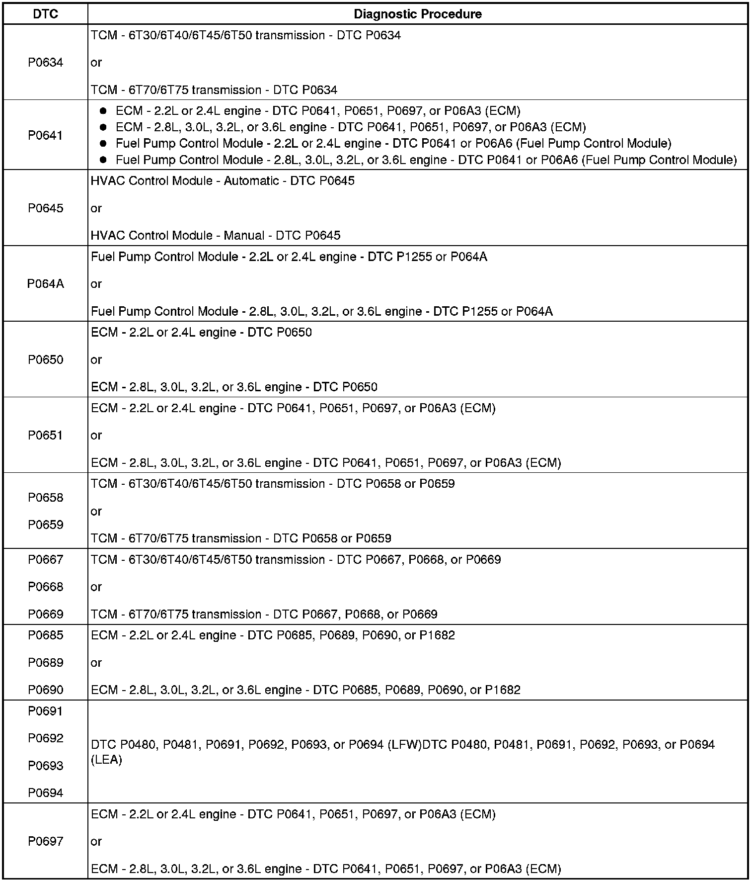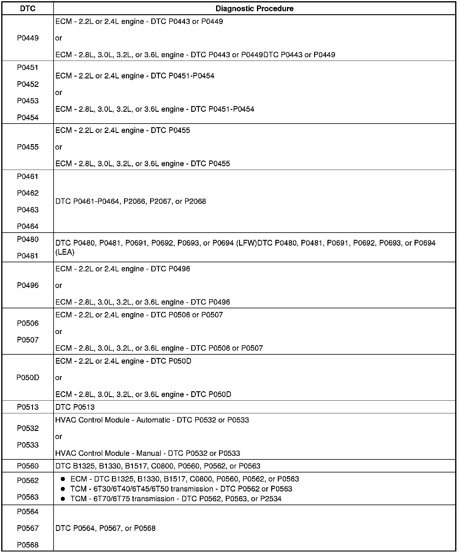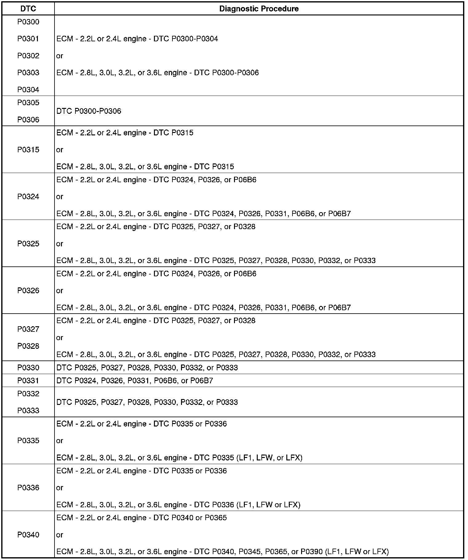 This master DTC list includes all applicable DTCs in alphanumeric order.