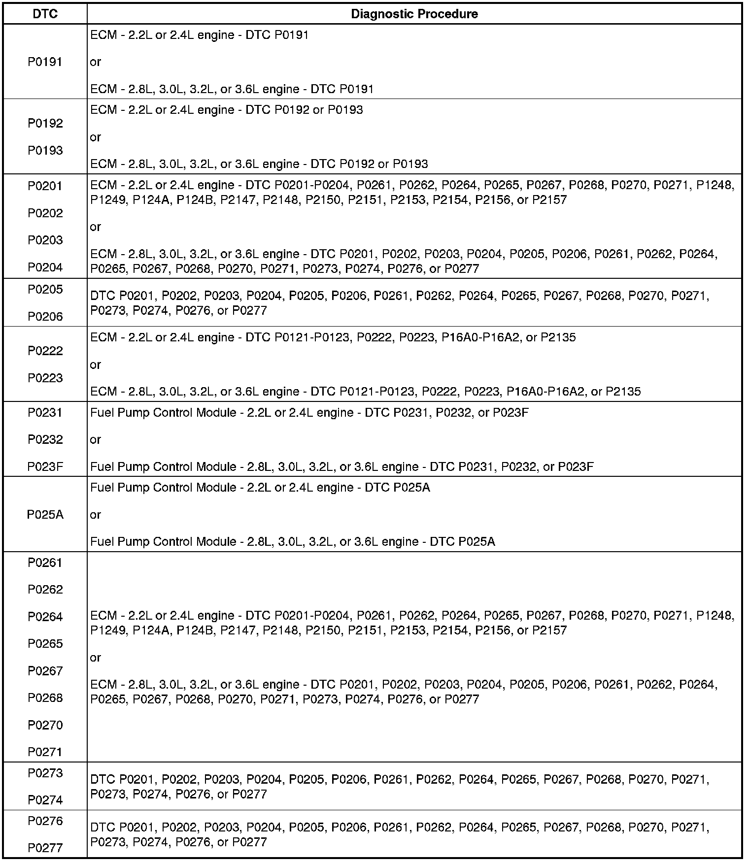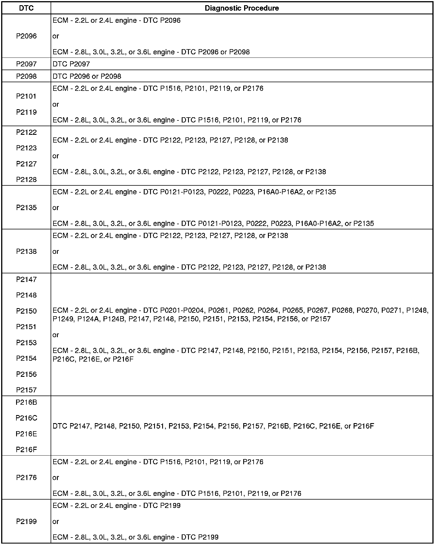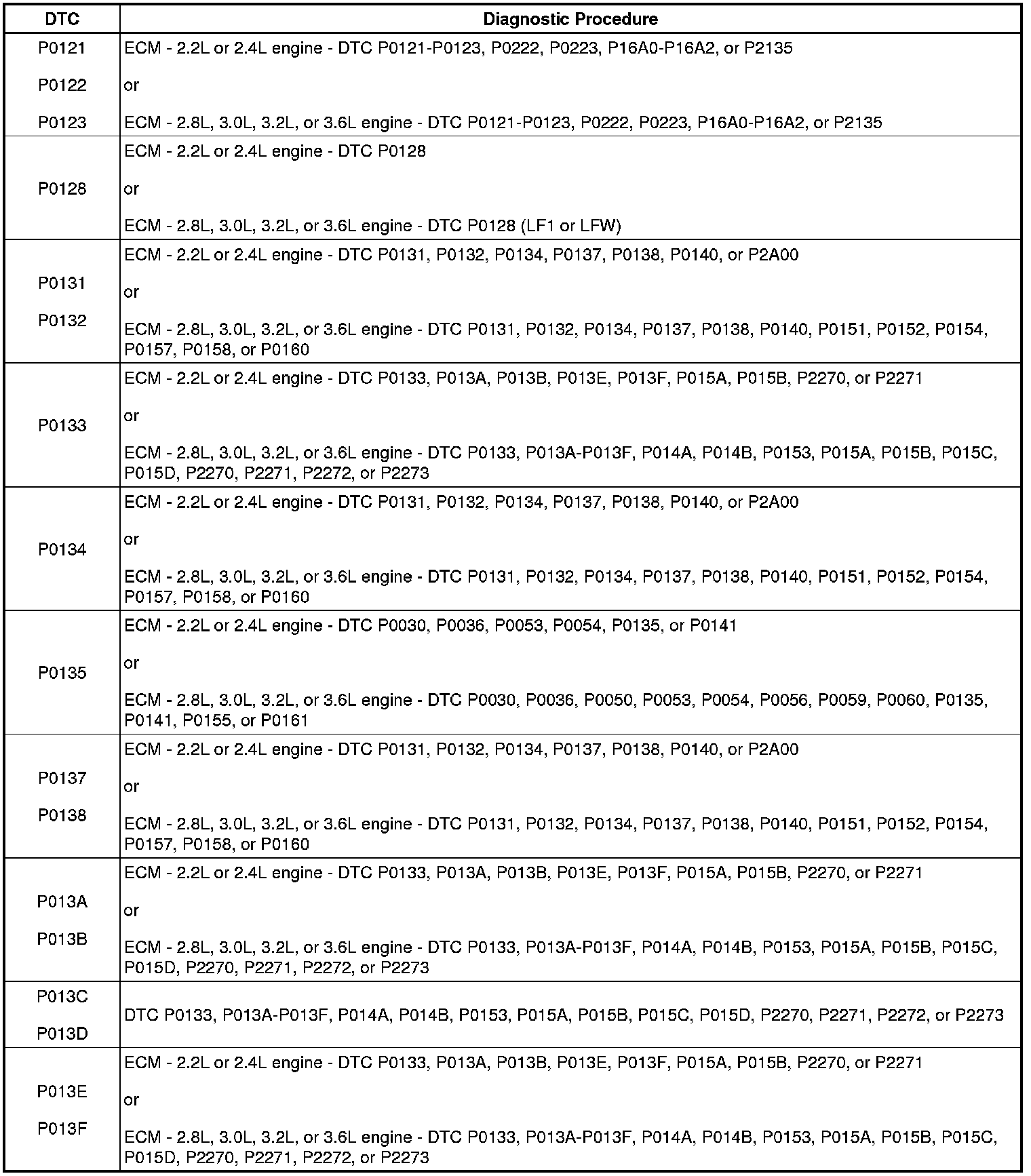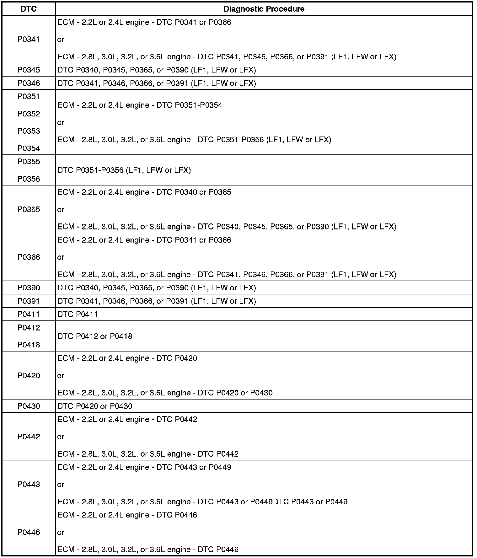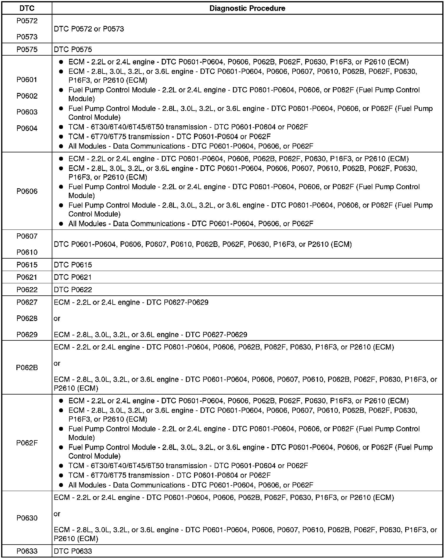 This master DTC list includes all applicable DTCs in alphanumeric order.