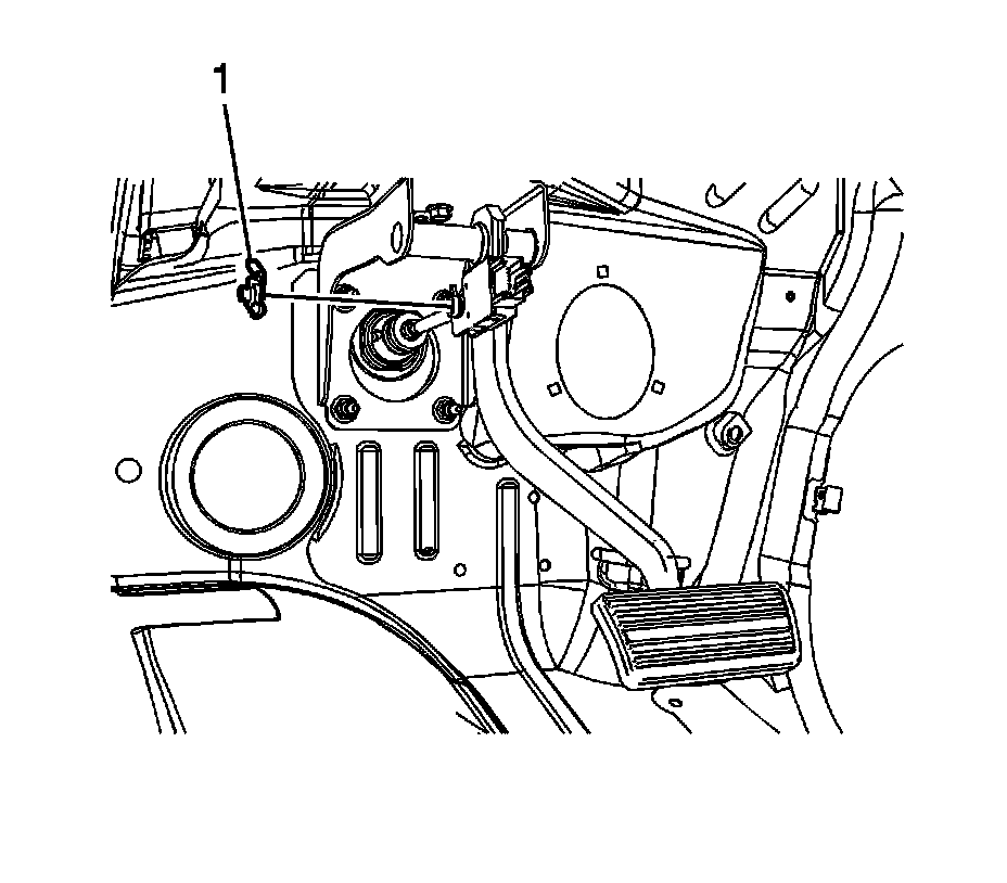 3. Remove the power brake booster pushrod retaining clip (1).