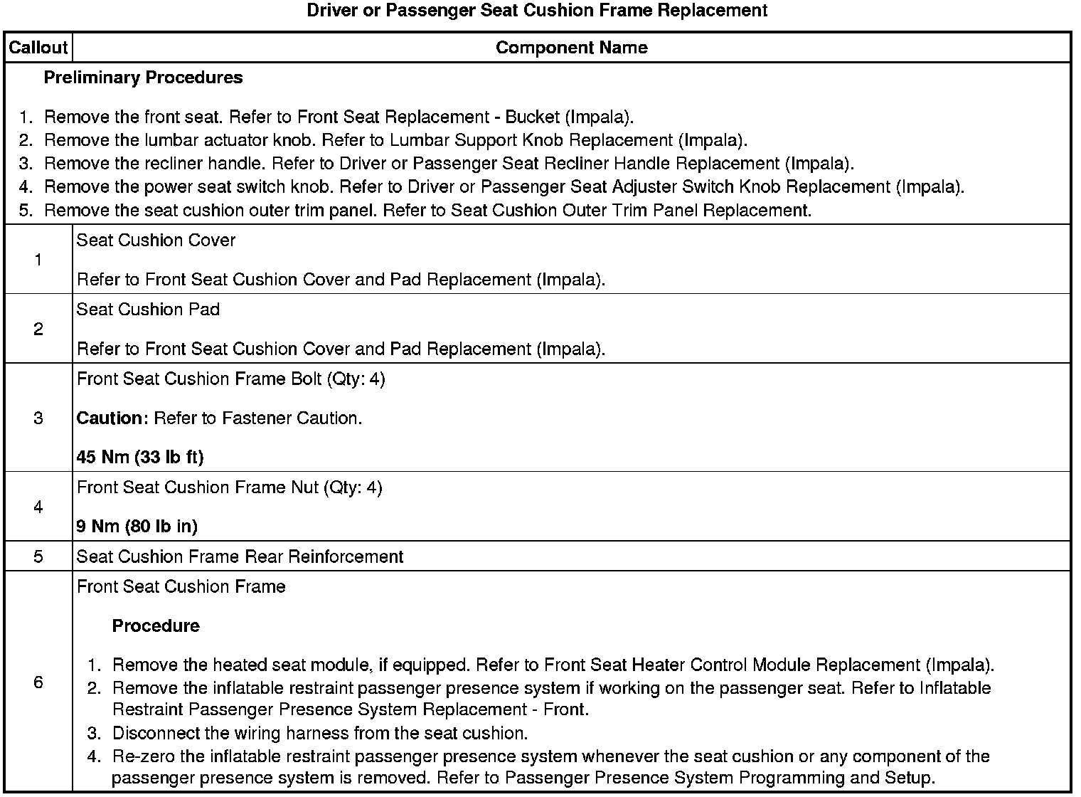 Driver or Passenger Seat Cushion Frame Replacement