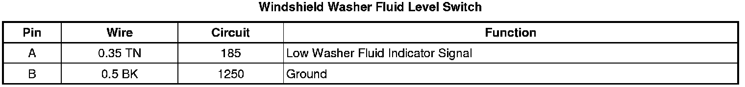 Washer Fluid Level Switch