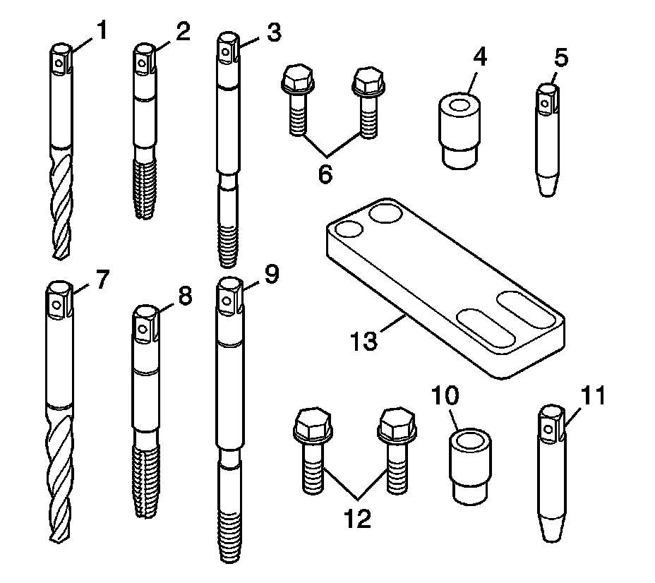 The cylinder head bolt hole thread repair tooling are in the kits EN 42385-2000 - insert kitand EN 42385-700 - kit. The cylinder head bolt hole thread repair components consist of the following: