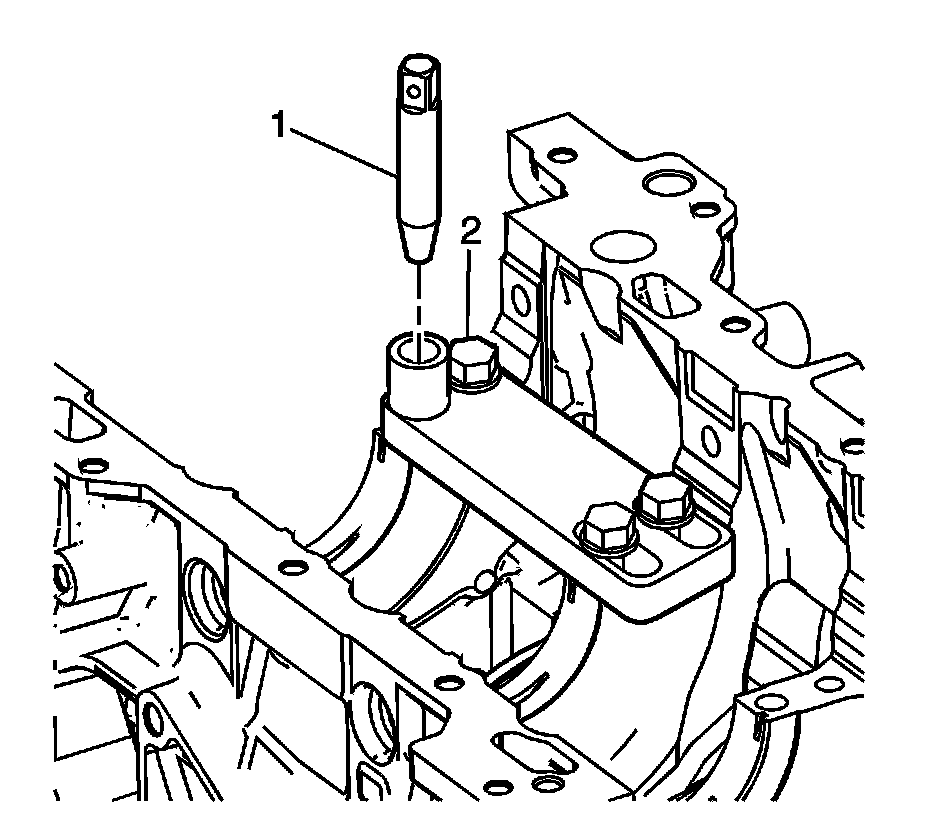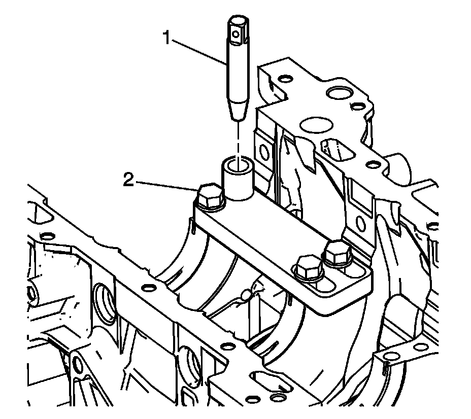3. Position the alignment pin (1) through the bushing and into the crankshaft main cap bolt hole.