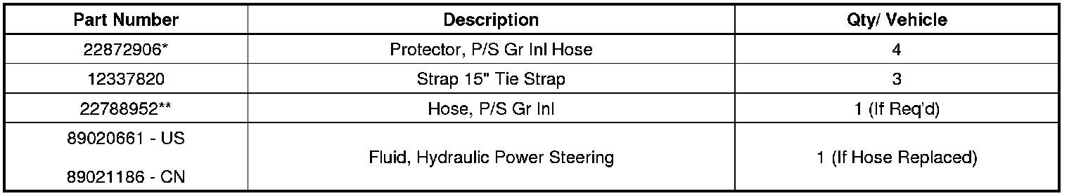 Parts required to complete this recall are to be obtained from General Motors Customer Care and Aftersales (GMCC&A Please refer to your "involved vehicles listing" before ordering parts. Normal orders should be placed on a DRO = Daily Replenishment Order. In an emergency situation, parts should be ordered on a CSO = Customer Special Order. Please note that less than 1% of vehicles will require replacement of the power steering hose.