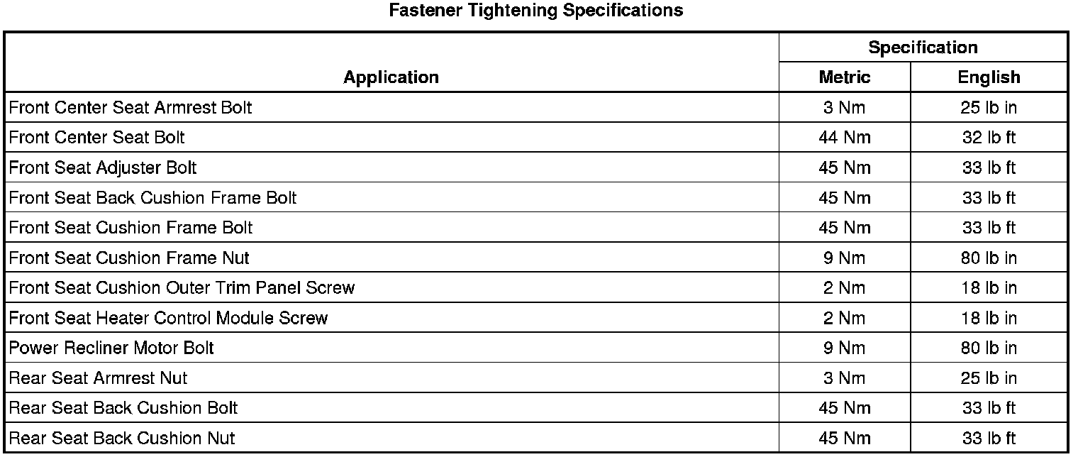 Fastener Tightening Specifications