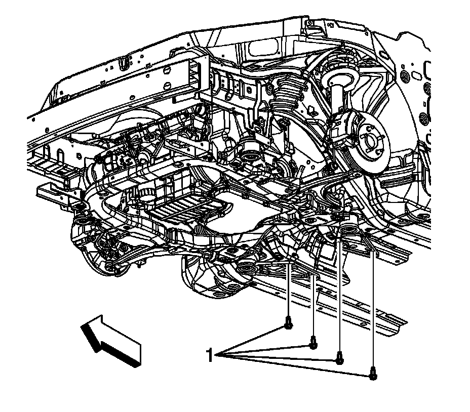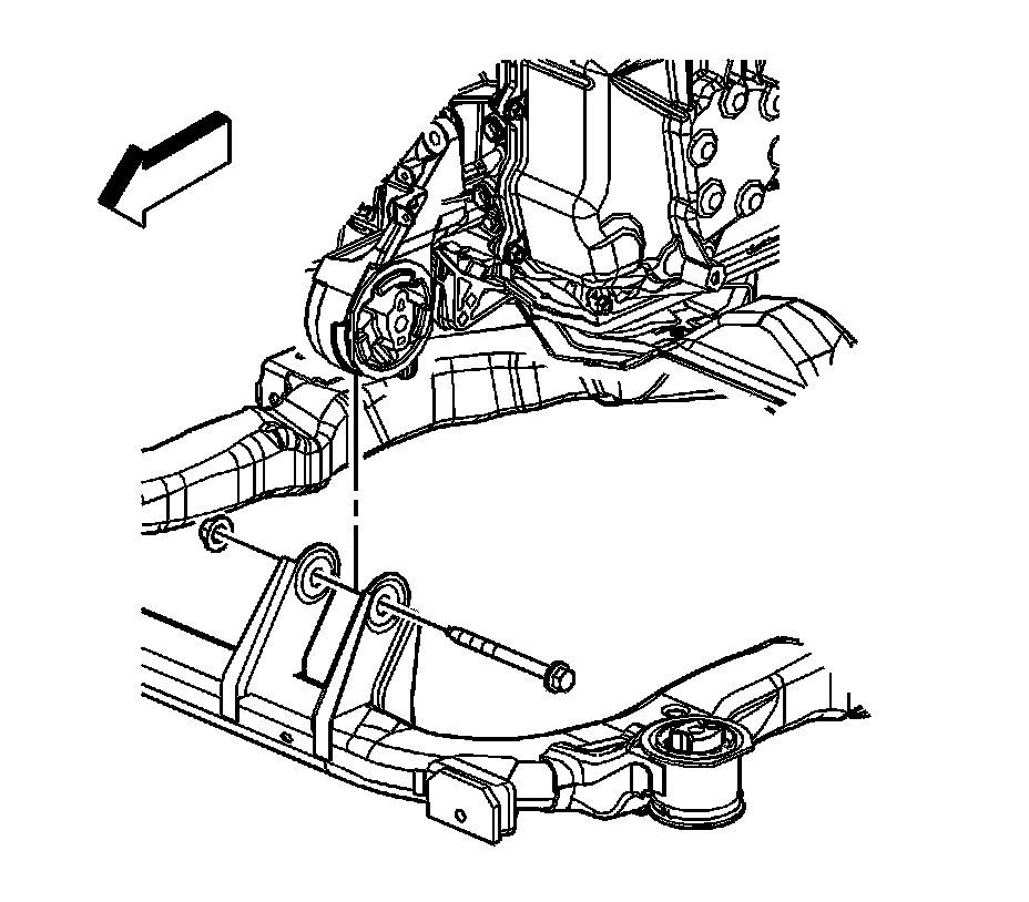 12. Remove the front transmission mount bolt from the frame. Refer to Transmission Front Mount Replacement .