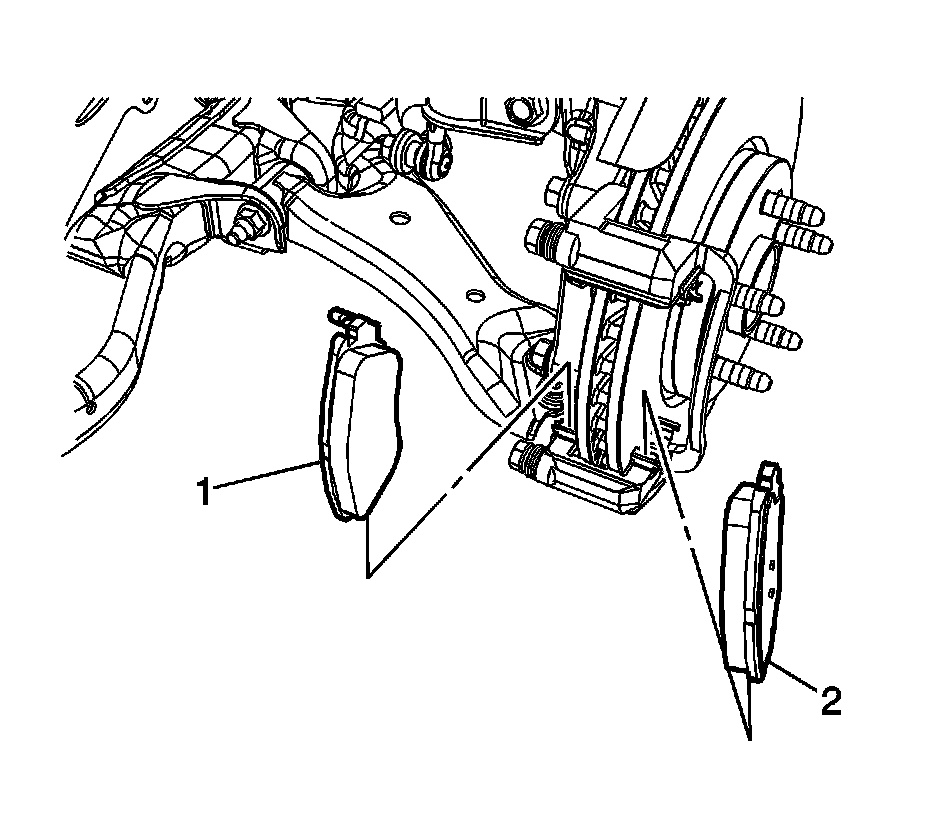 6. Install the outer brake pad (2).