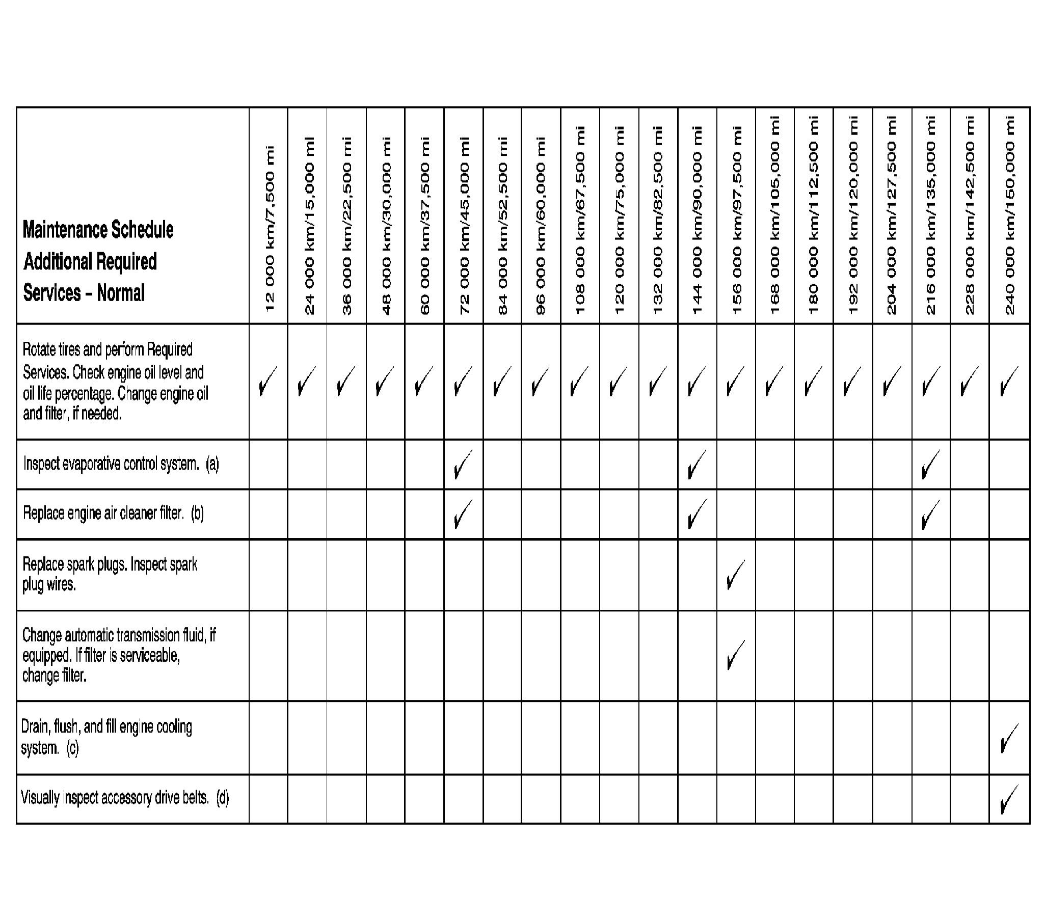 Footnotes - Maintenance Schedule Additional Required Services - Normal