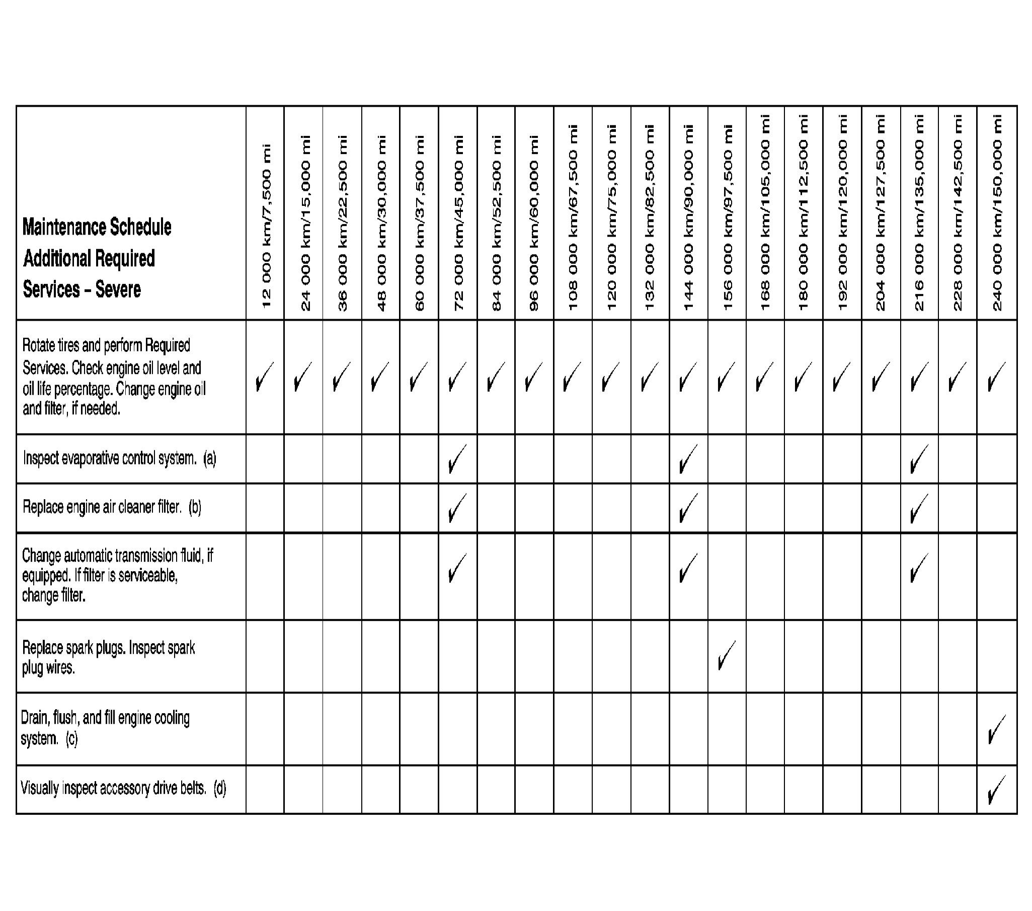 Footnotes - Maintenance Schedule Additional Required Services - Severe