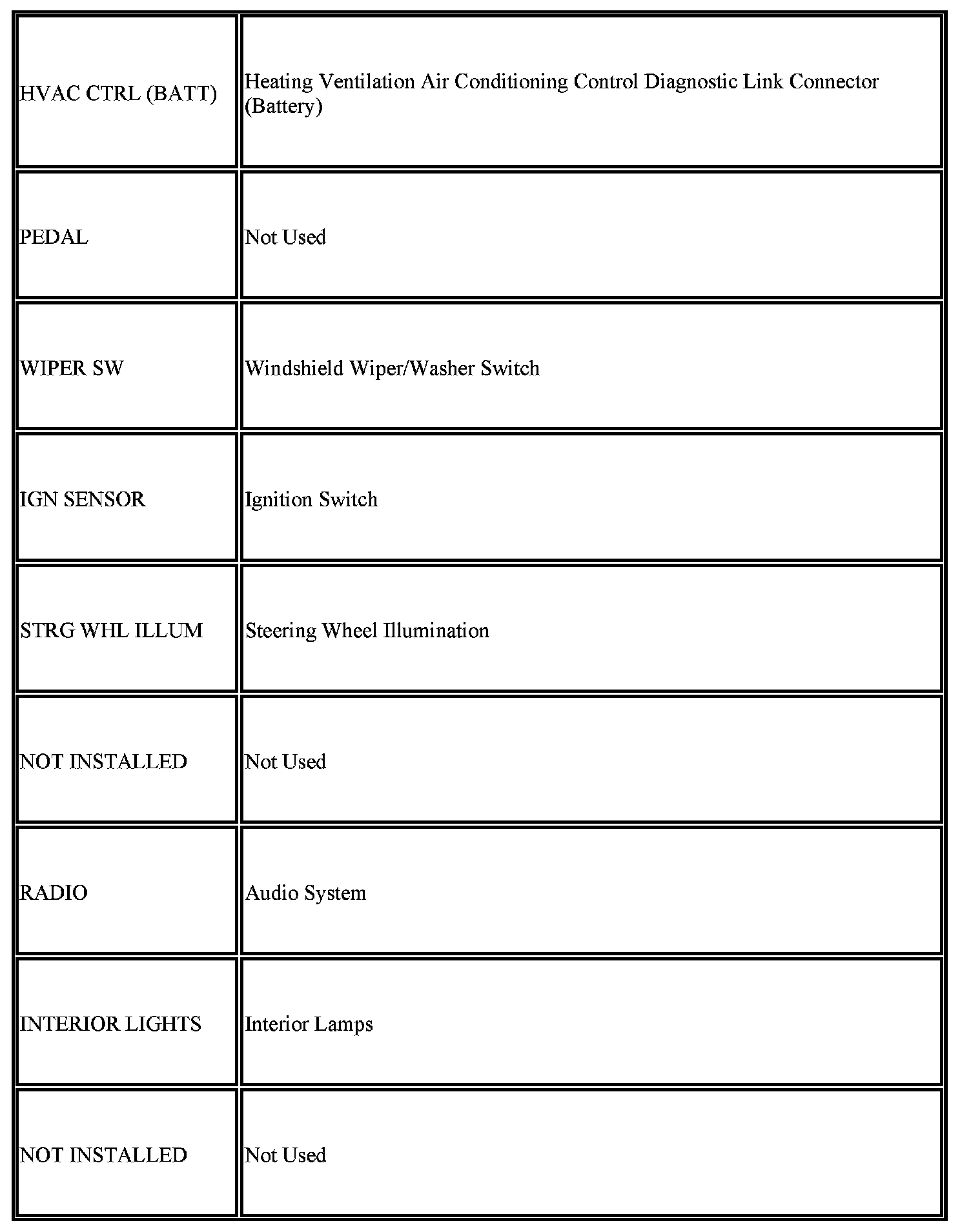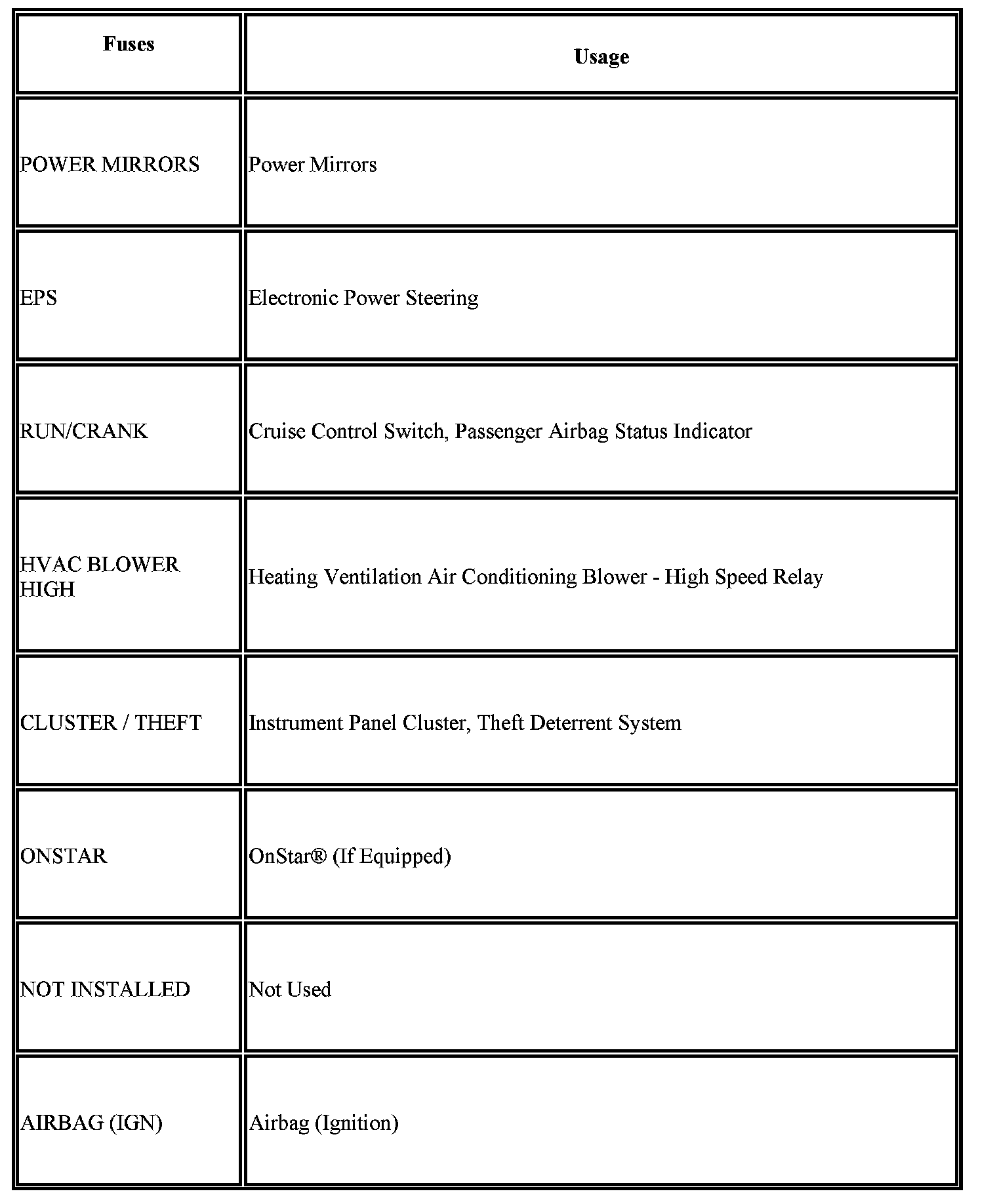 Instrument Panel Fuse Block - Owners Manual