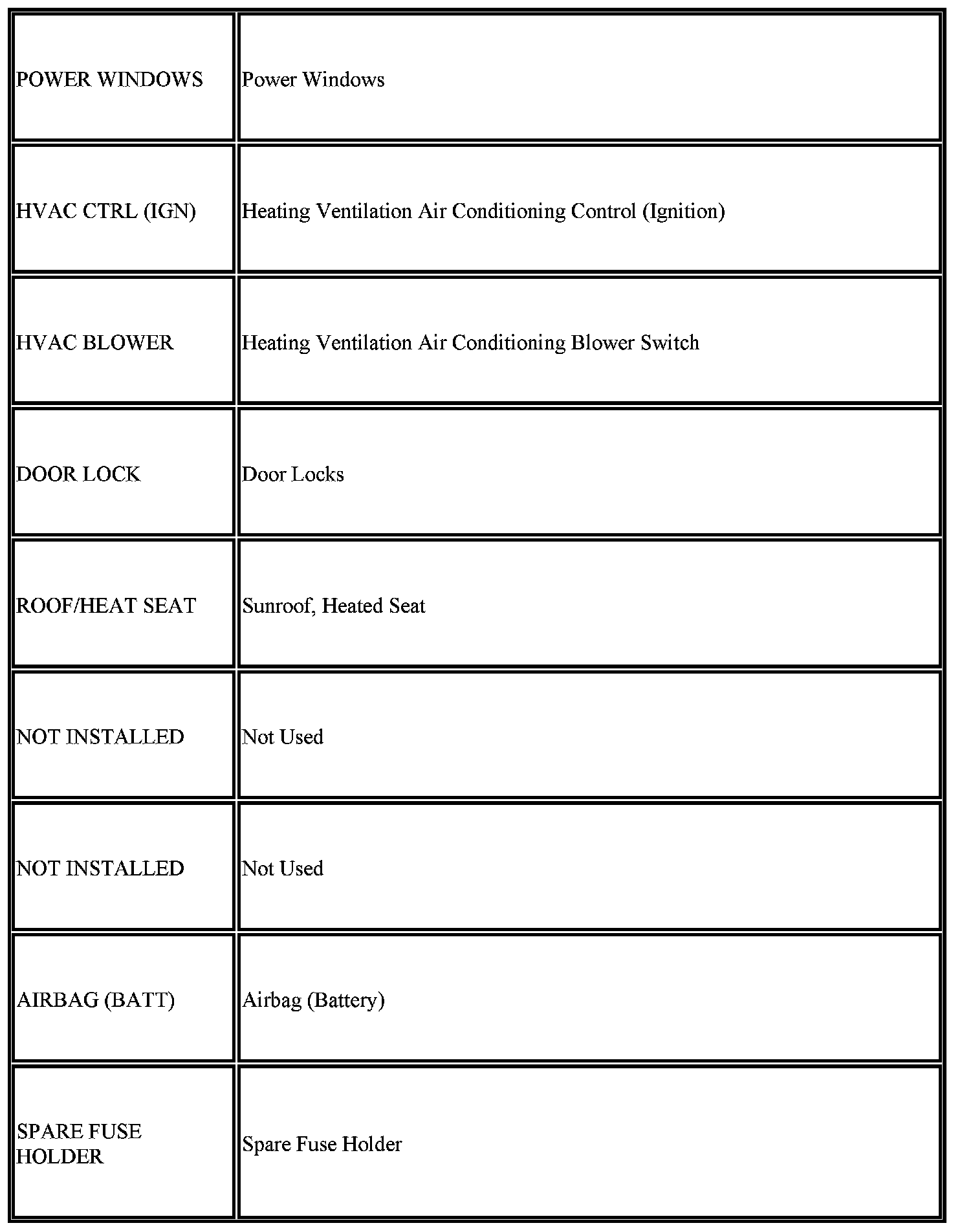 The vehicle may not be equipped with all of the fuses, relays, and features shown.
