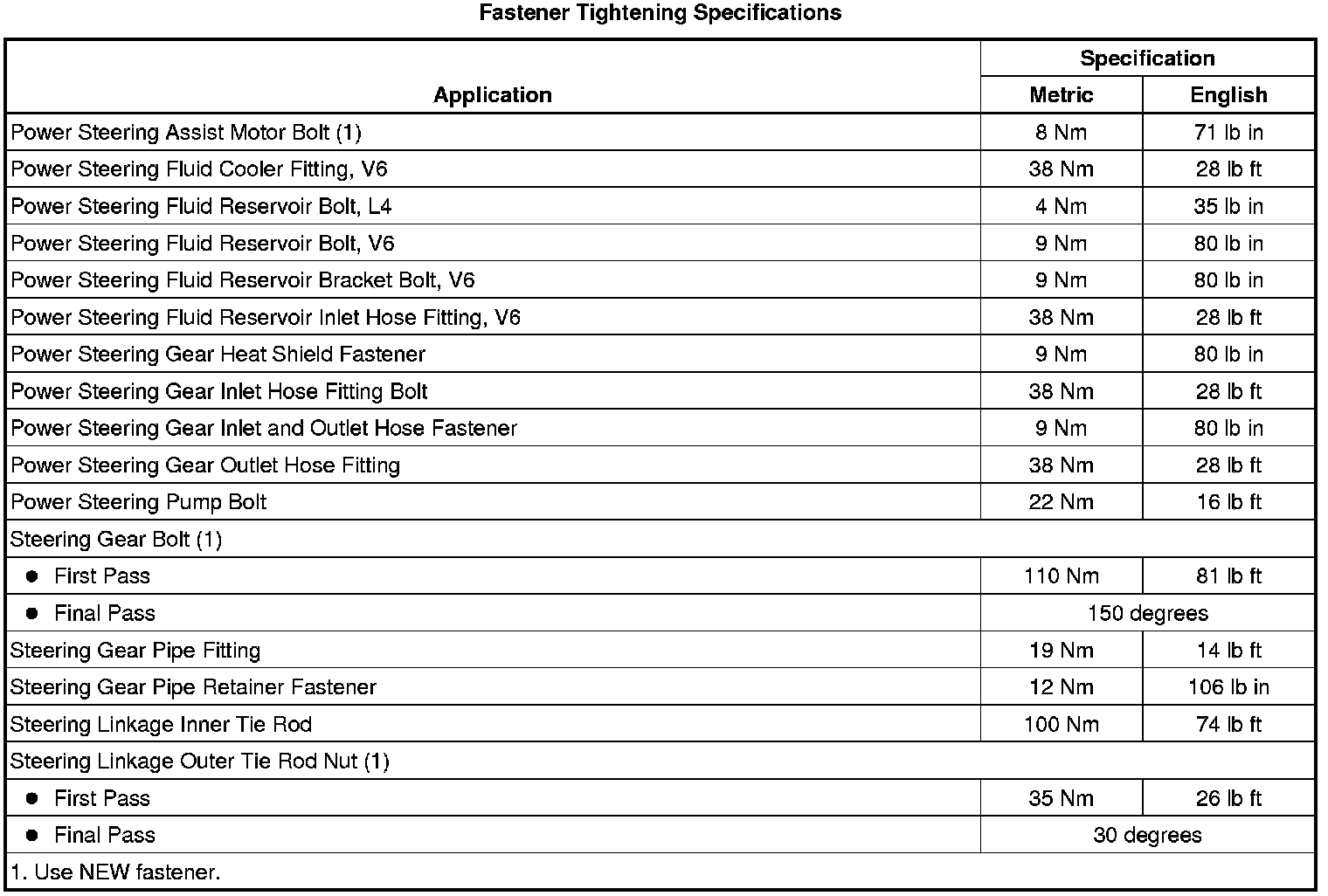 Fastener Tightening Specifications