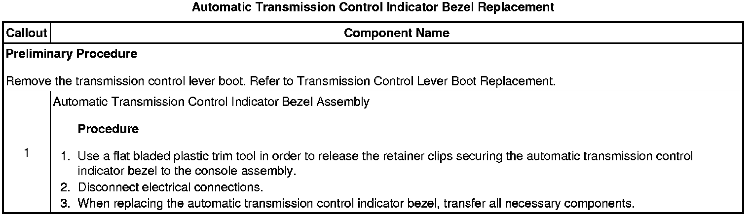 Automatic Transmission Control Indicator Bezel Replacement