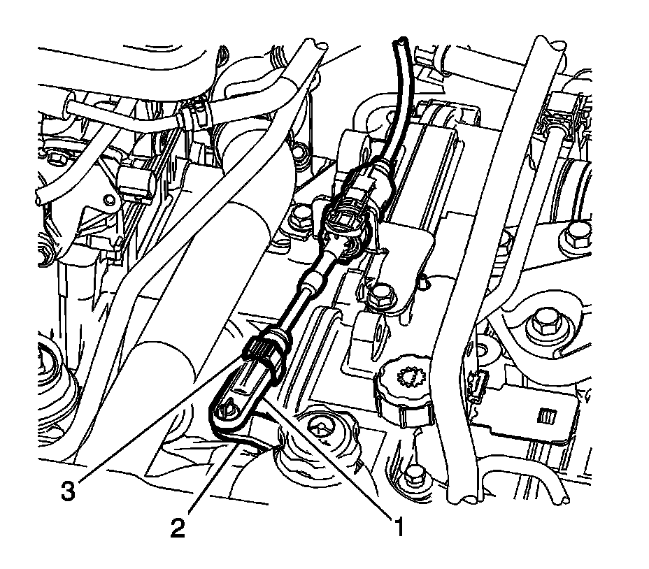 5. Depress the shift control cable adjustment lock (3) to lock the adjustment.