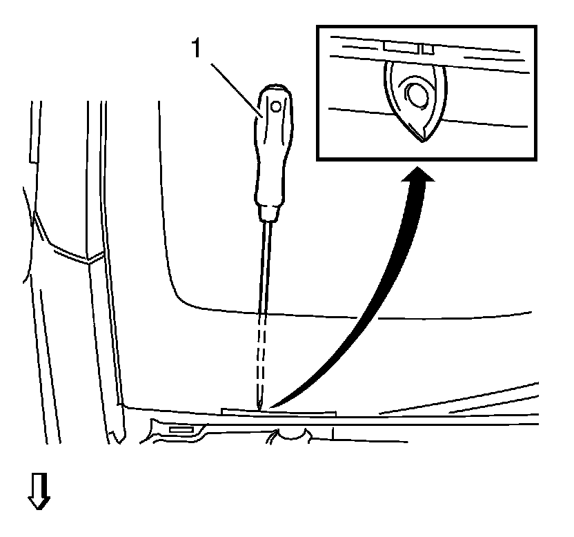 5. Remove the left and right windshield side garnish moldings. Refer to Windshield Side Garnish Molding Replacement Windshield Side Garnish Molding Replacement.