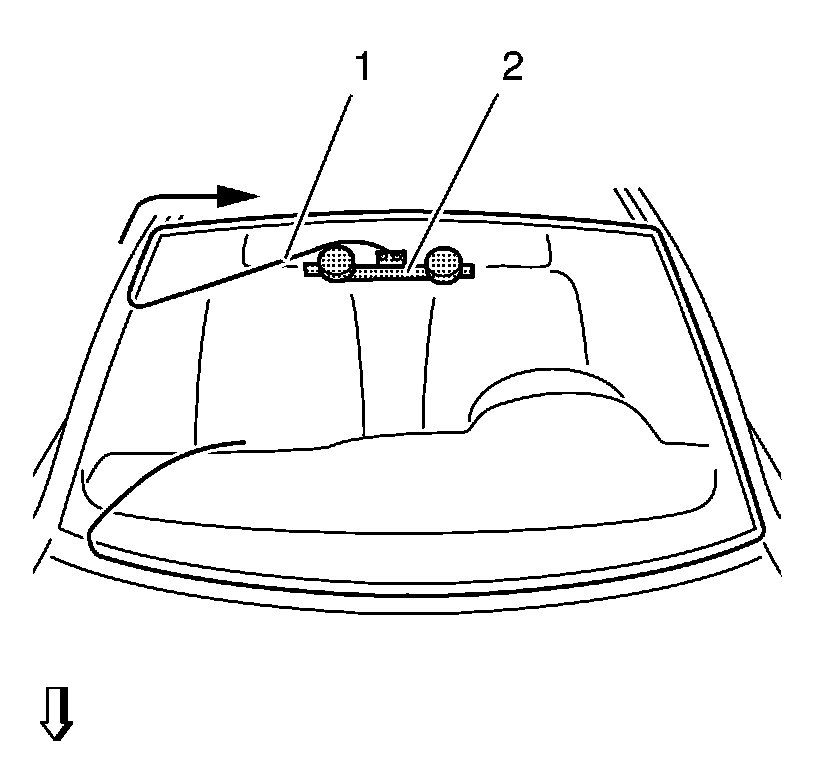 6. Remove the rearview mirror. Refer to Inside Rearview Mirror Replacement Inside Rearview Mirror Replacement.