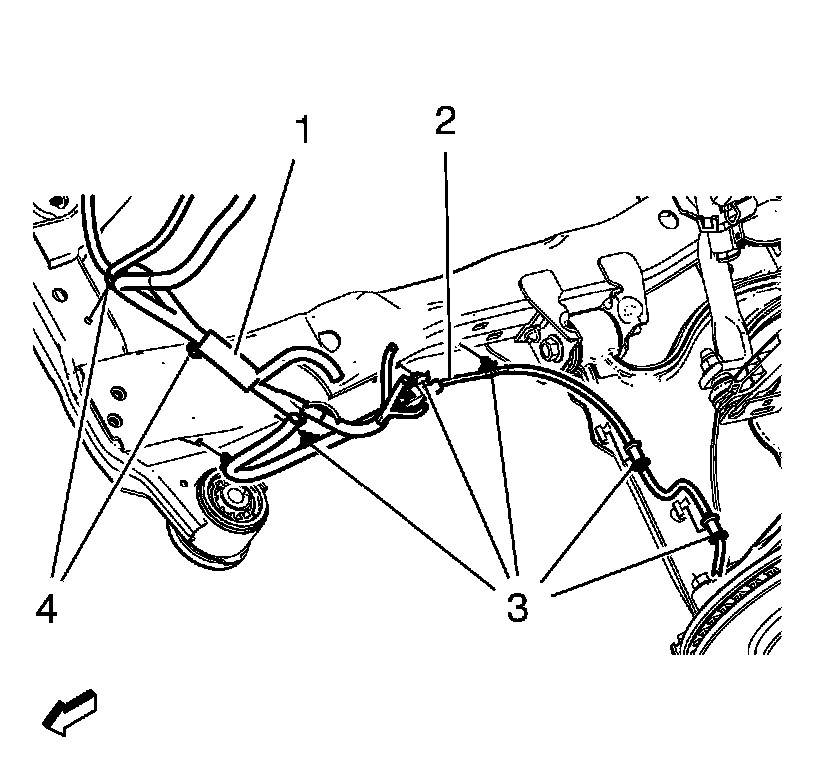 8.Remove the wiring harness retainers (3) from the frame and the lower control arm.