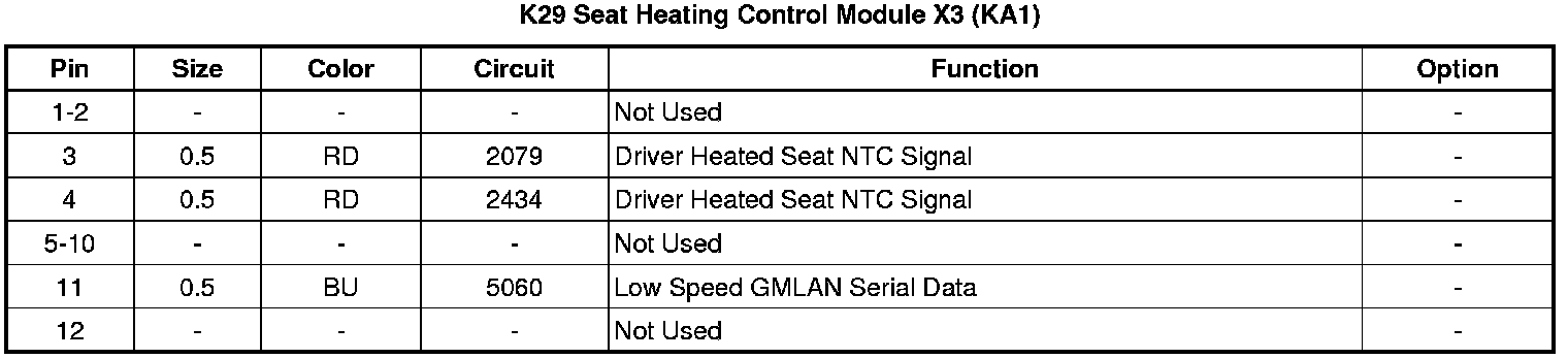 K29 Seat Heating Control Module X3 (KA1)