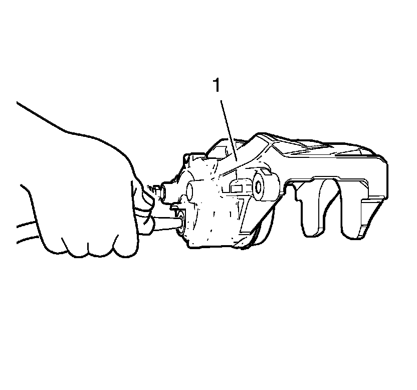 2. Remove the brake caliper piston from the caliper bore by directing low pressure compressed air into the caliper (1) through the fluid inlet hole.