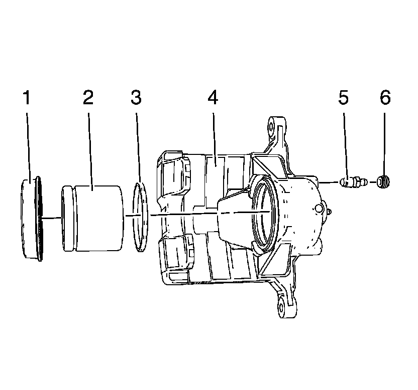 1. Lubricate the new piston seal (3) with brake fluid from a clean, sealed brake fluid container. Refer to Adhesives, Fluids, Lubricants, and Sealers Fluid Type Specifications for the recommended brake fluid.