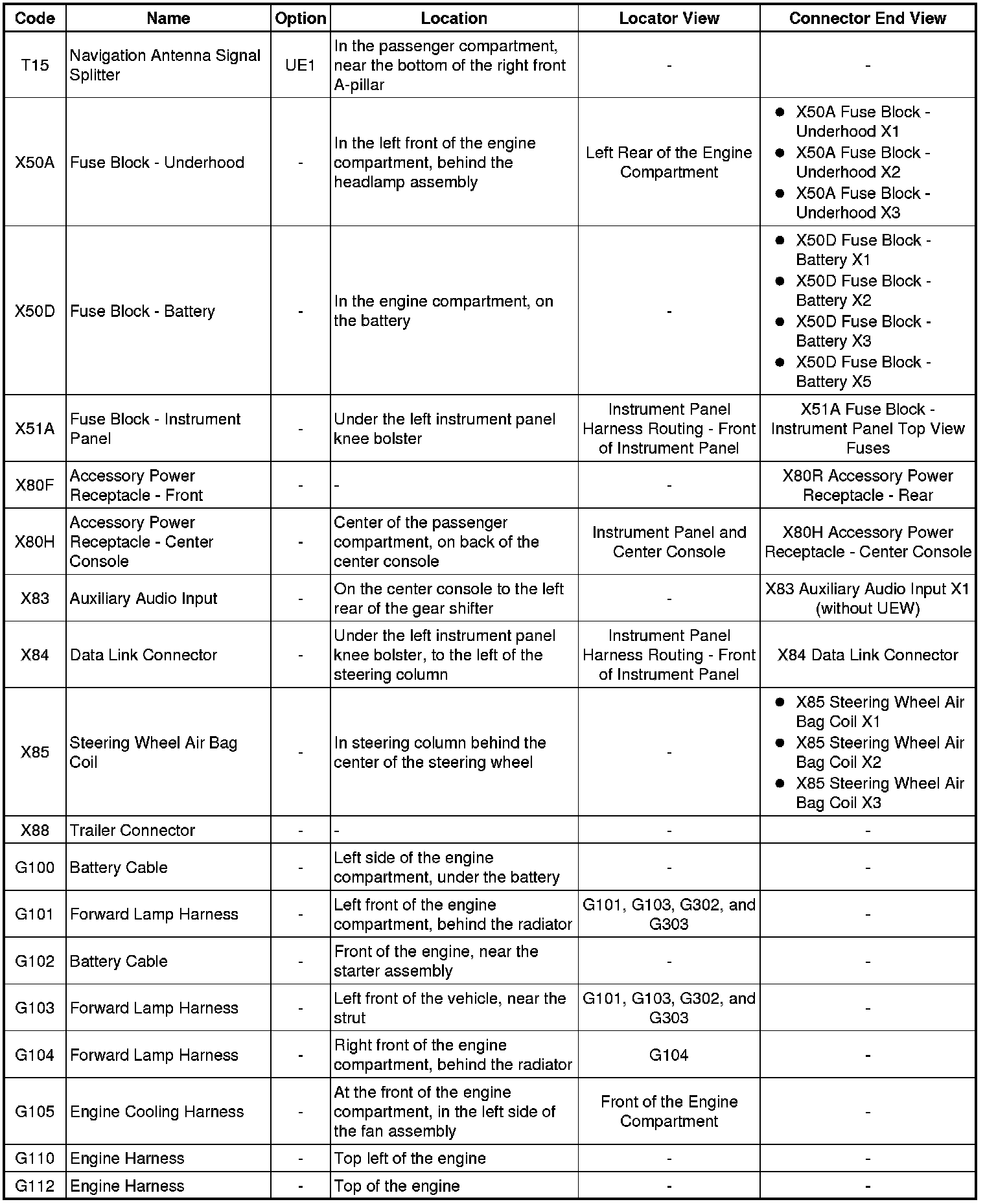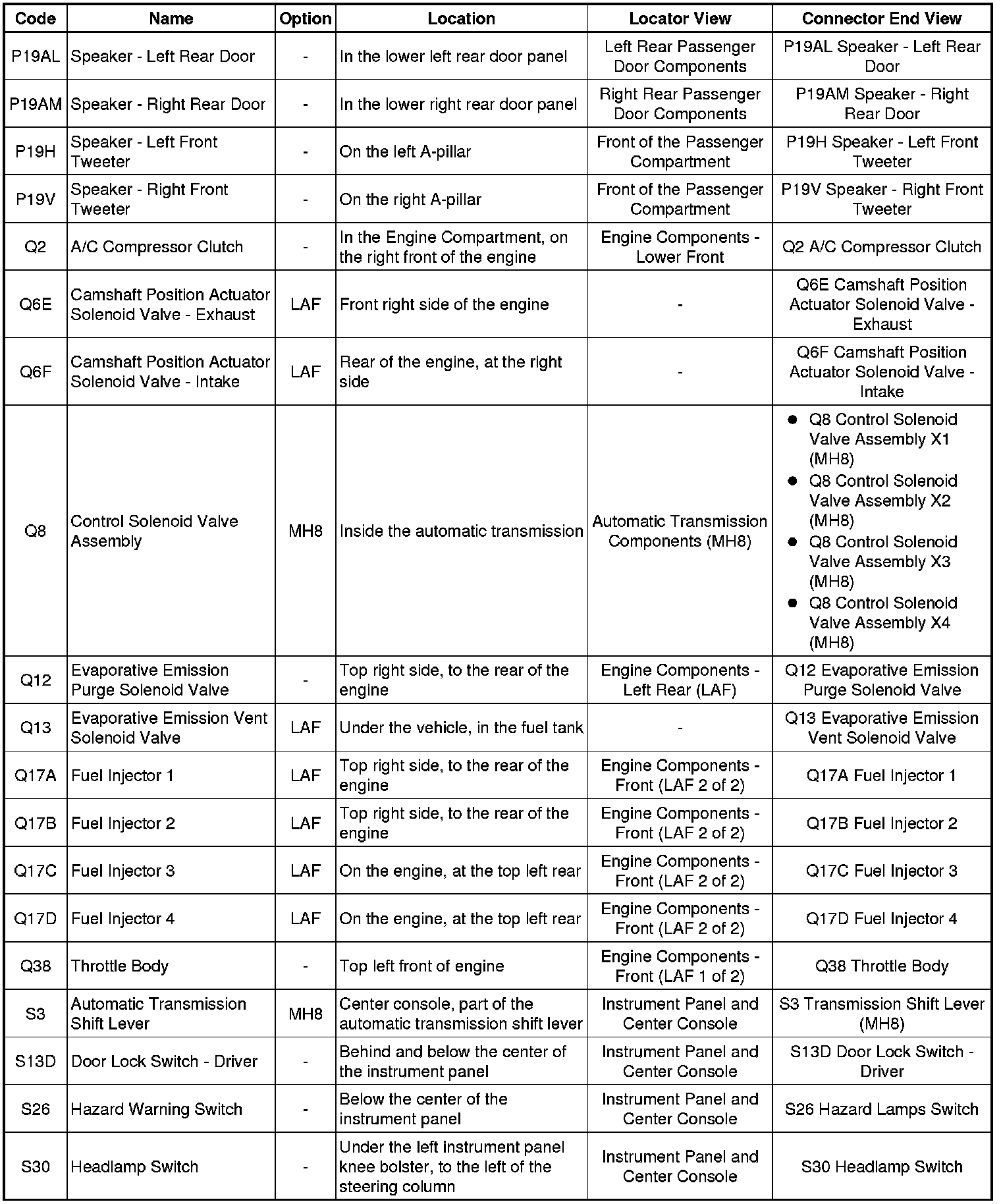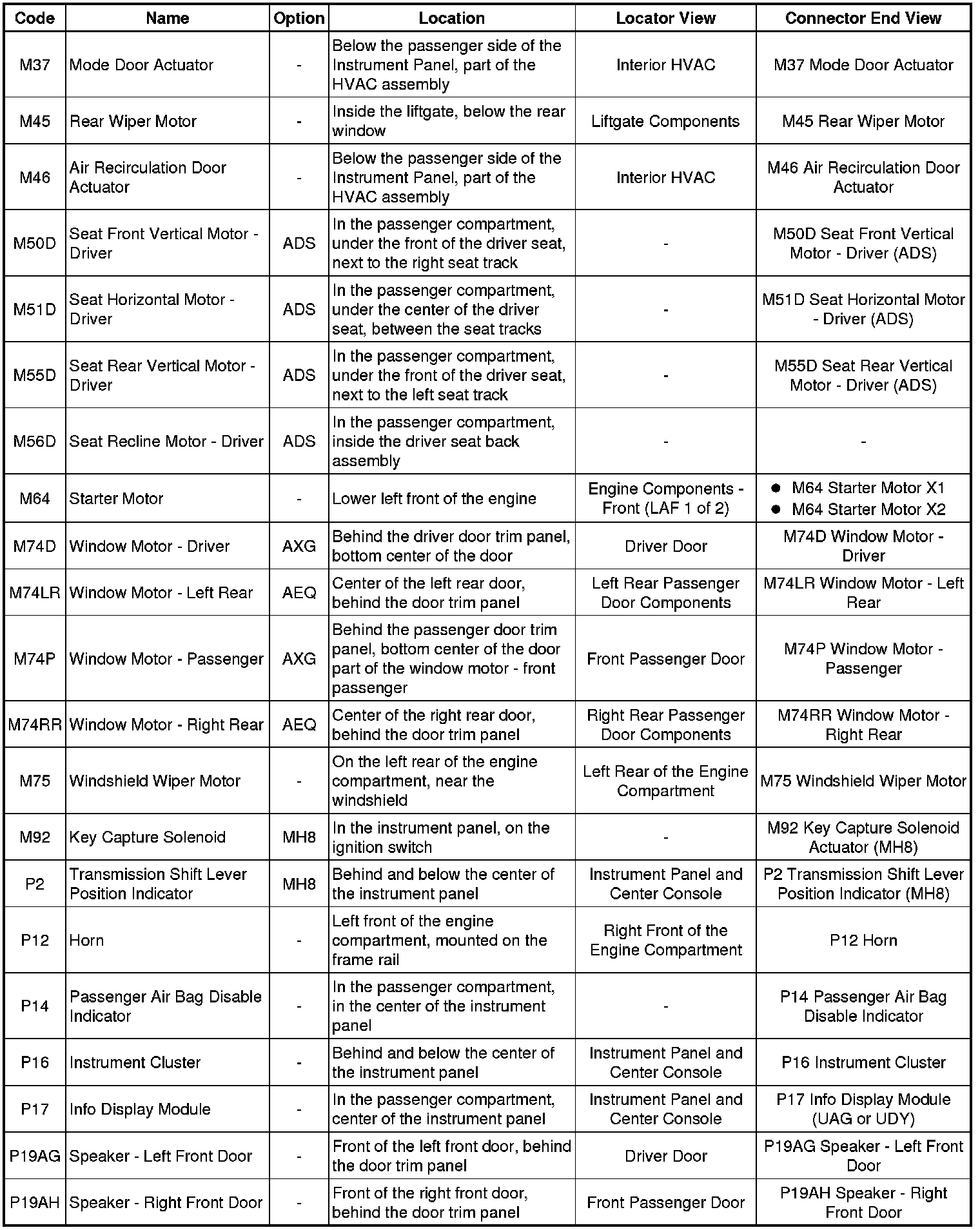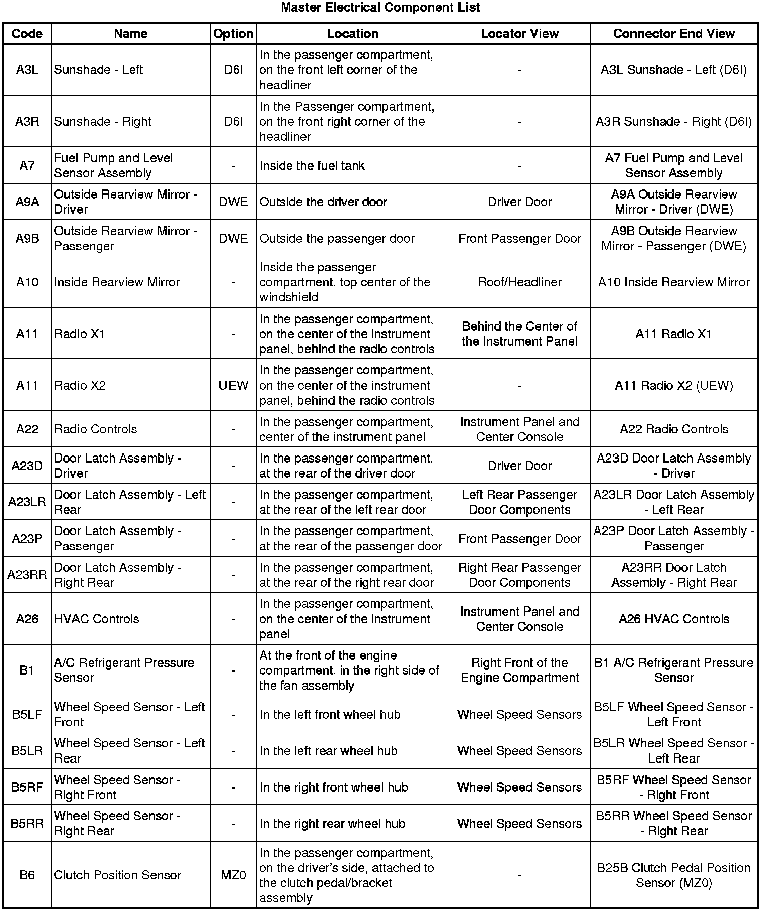 Master Electrical Component List