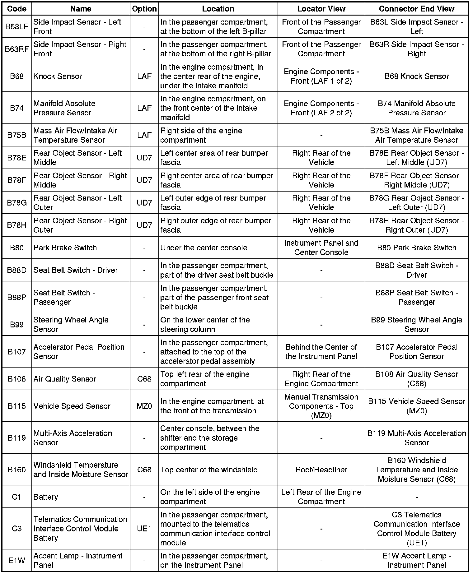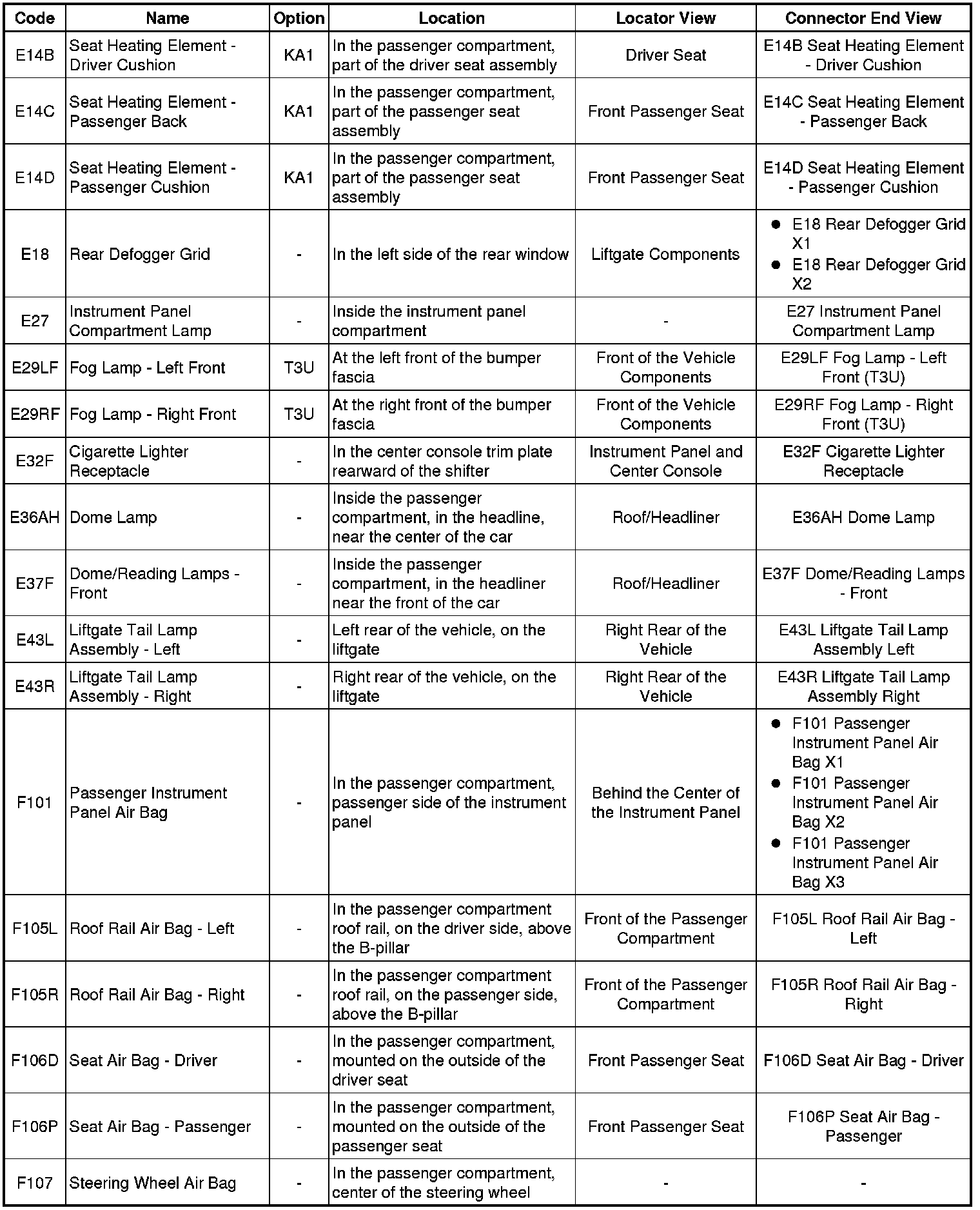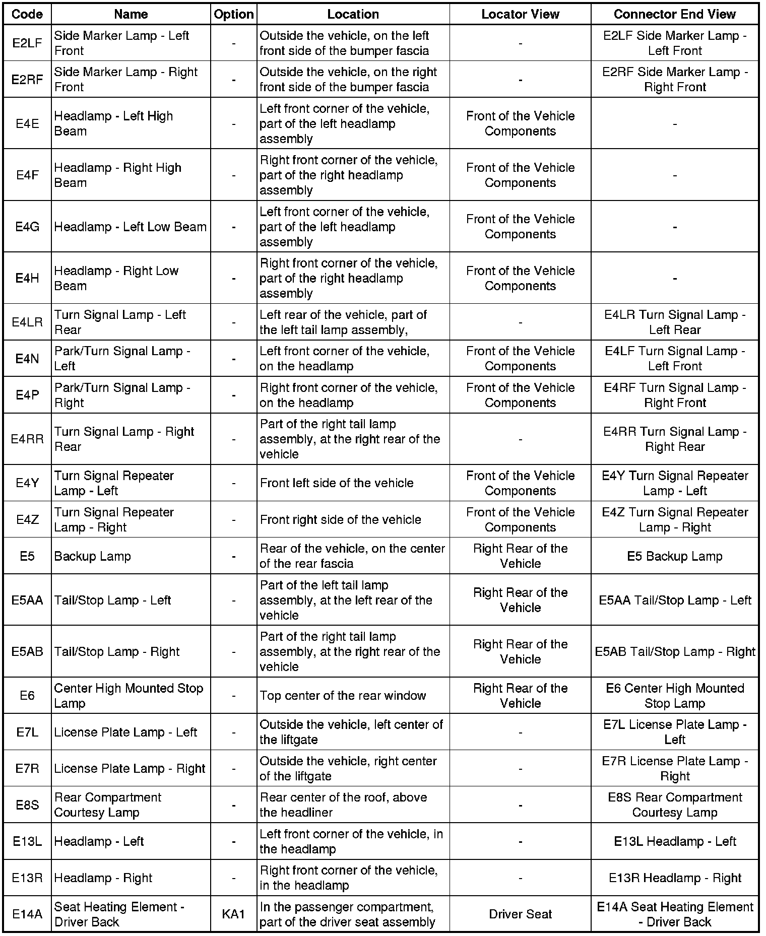 Master Electrical Component List