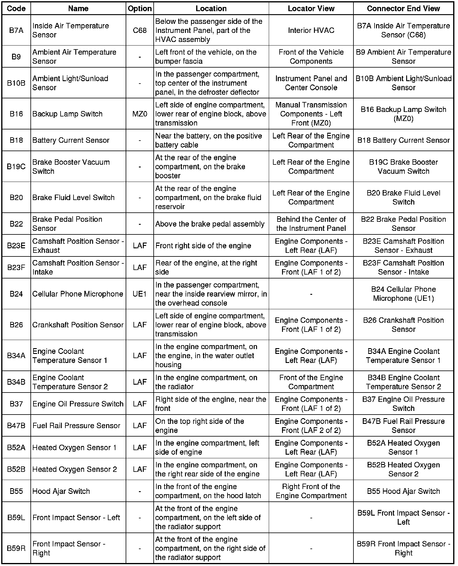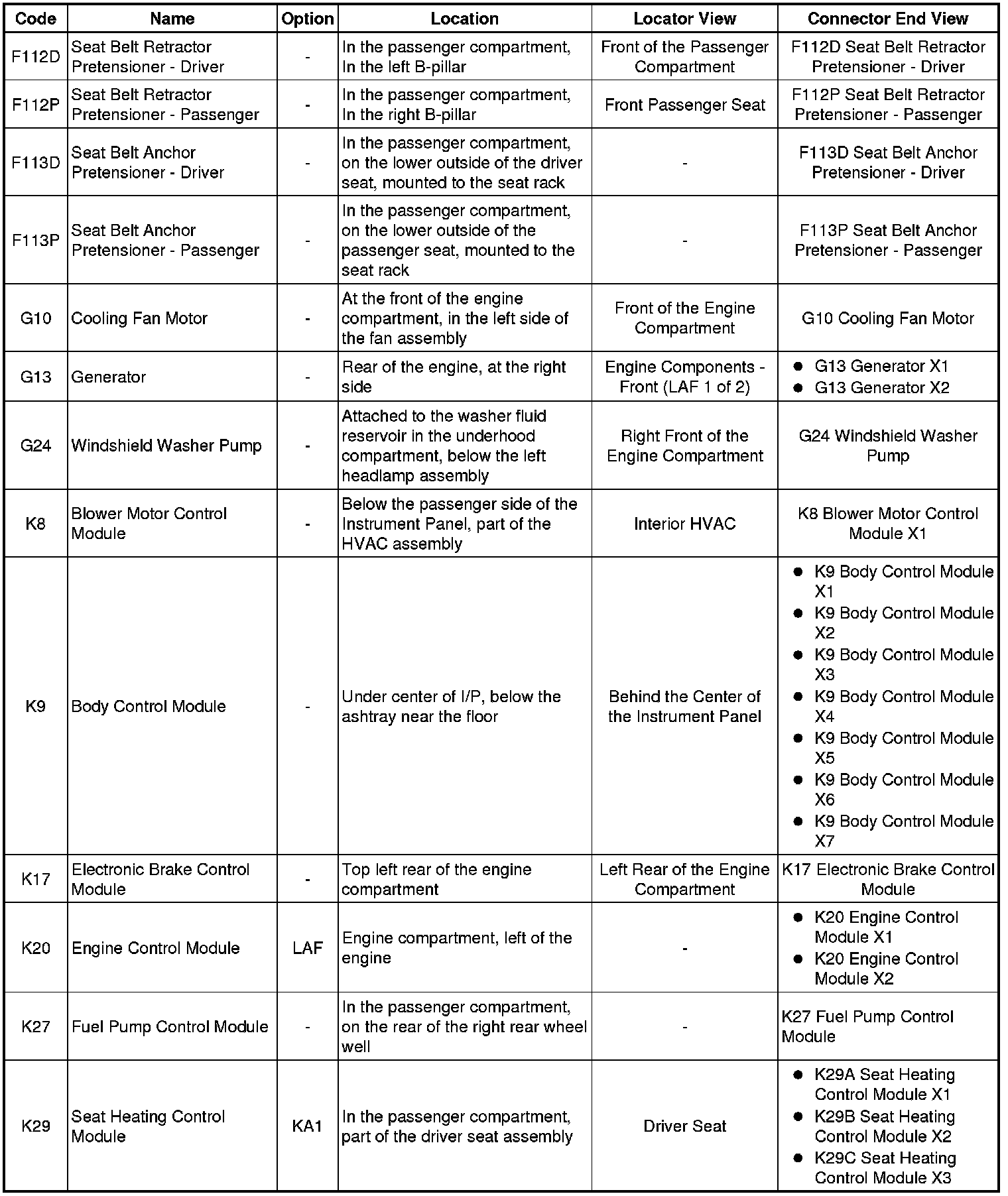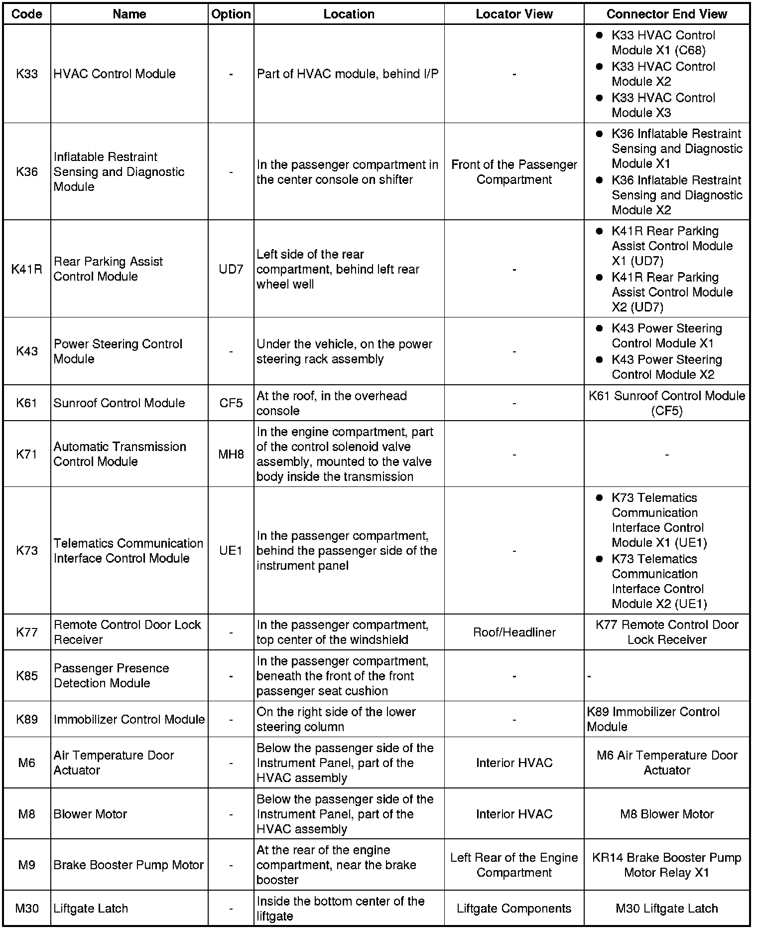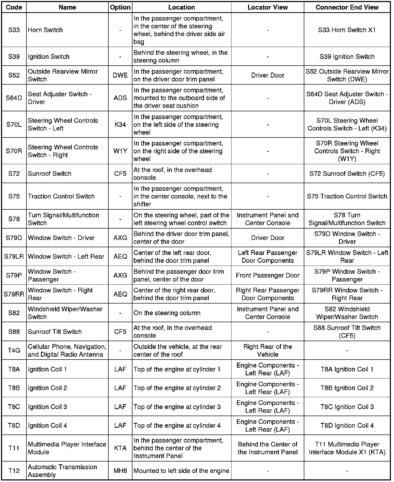 Master Electrical Component List