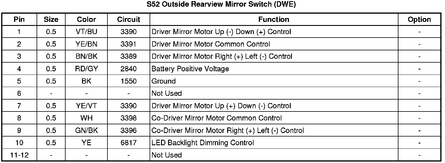 S52 Outside Rearview Mirror Switch (DWE)