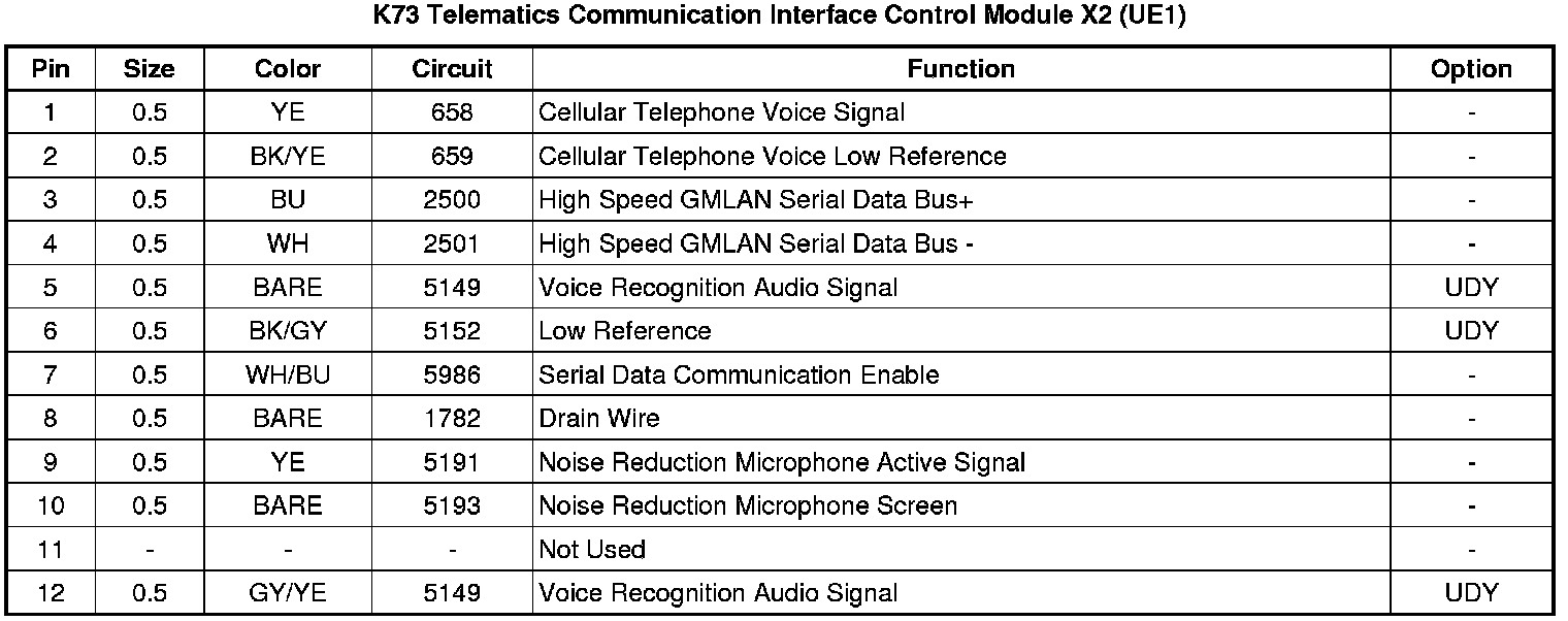 K73 Telematics Communication Interface Control Module X2 (UE1)