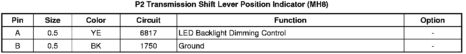 P2 Transmission Shift Lever Position Indicator (MH8)
