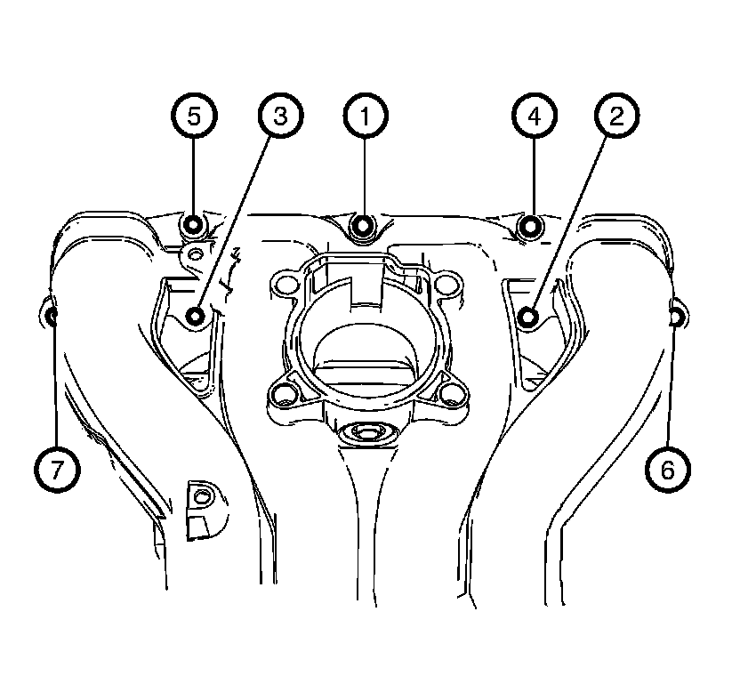 3. Tighten the intake manifold nuts and the intake manifold bolts in sequence as shown to 10 Nm (89 lb in).