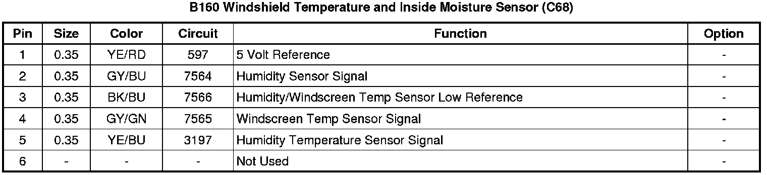 B160 Windshield Temperature and Inside Moisture Sensor (C68)