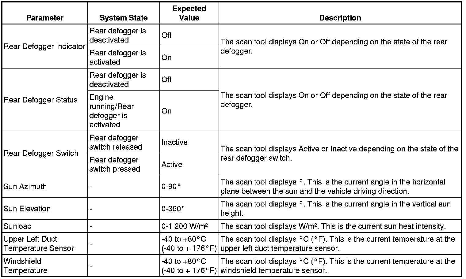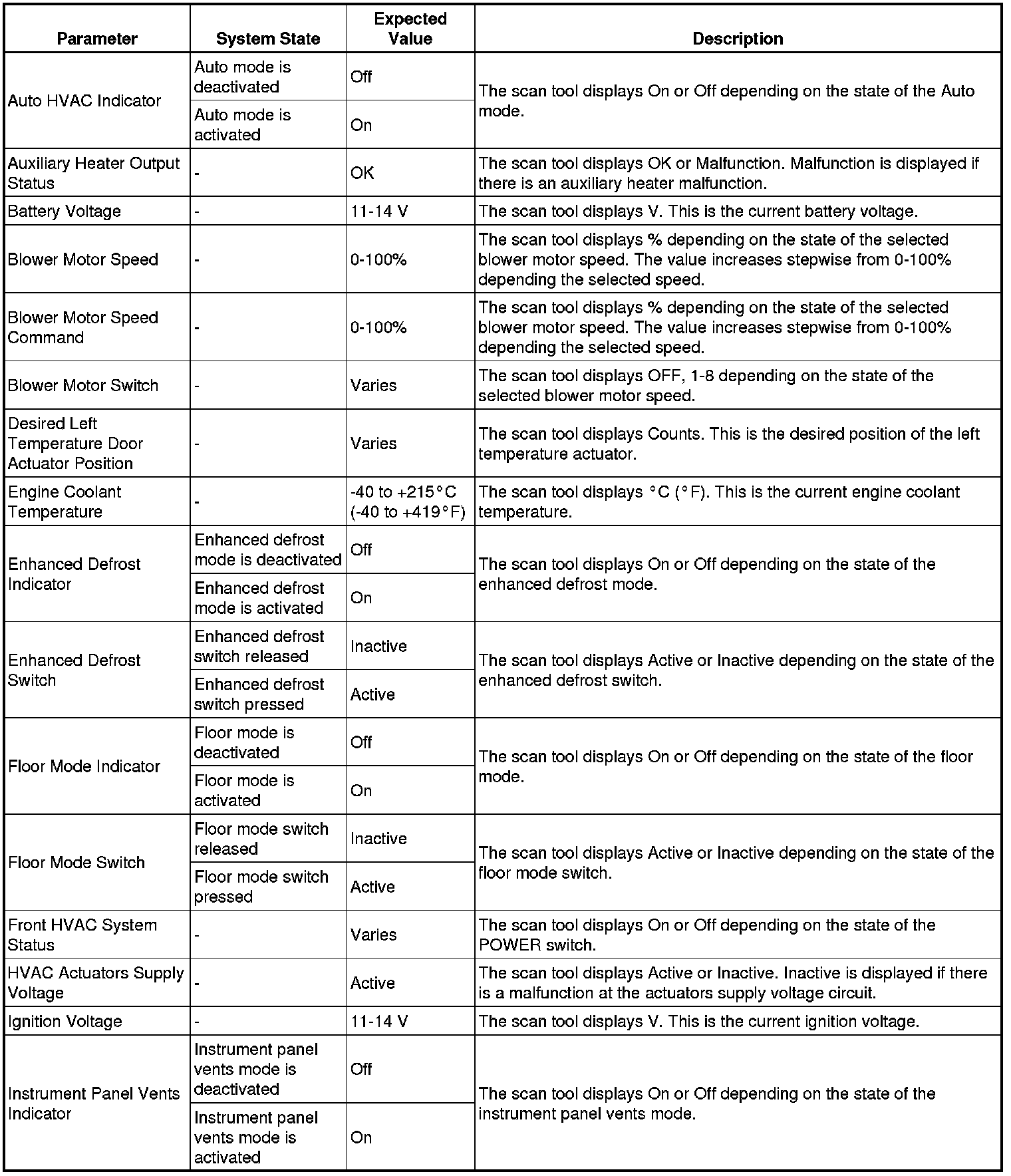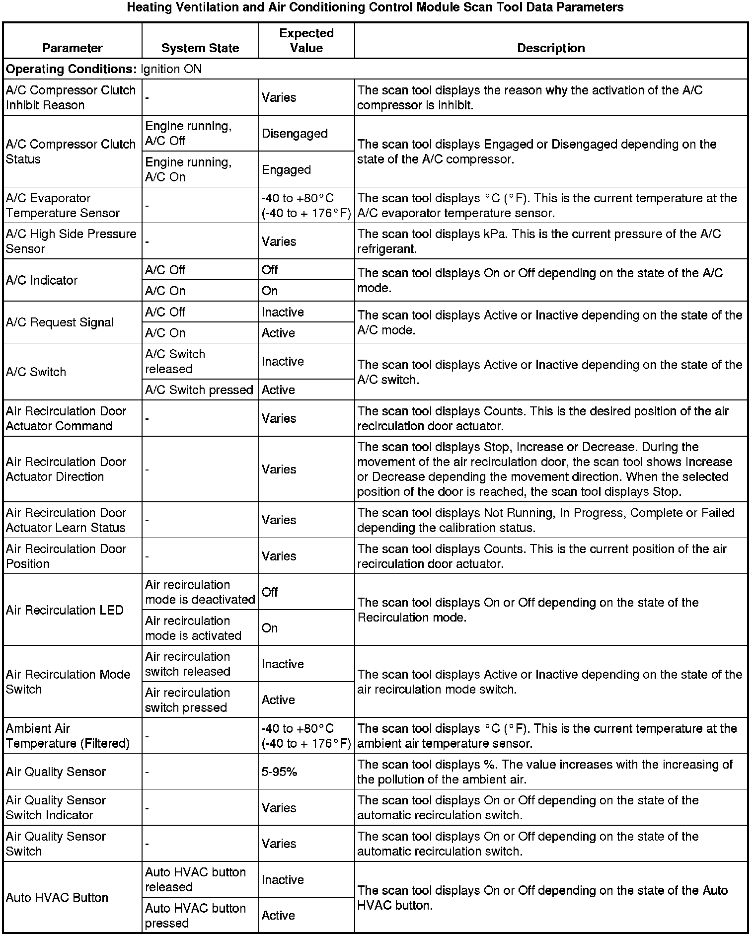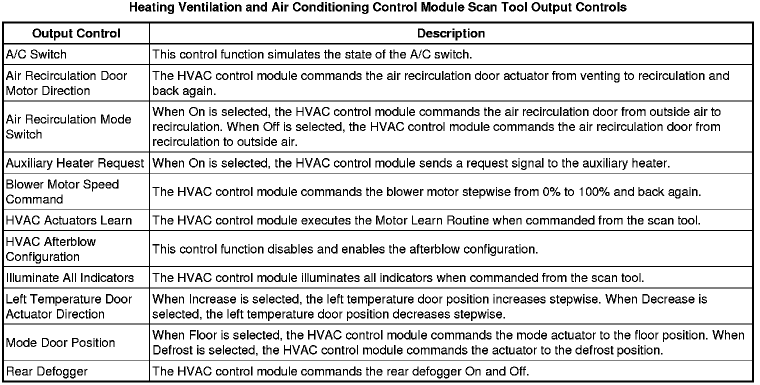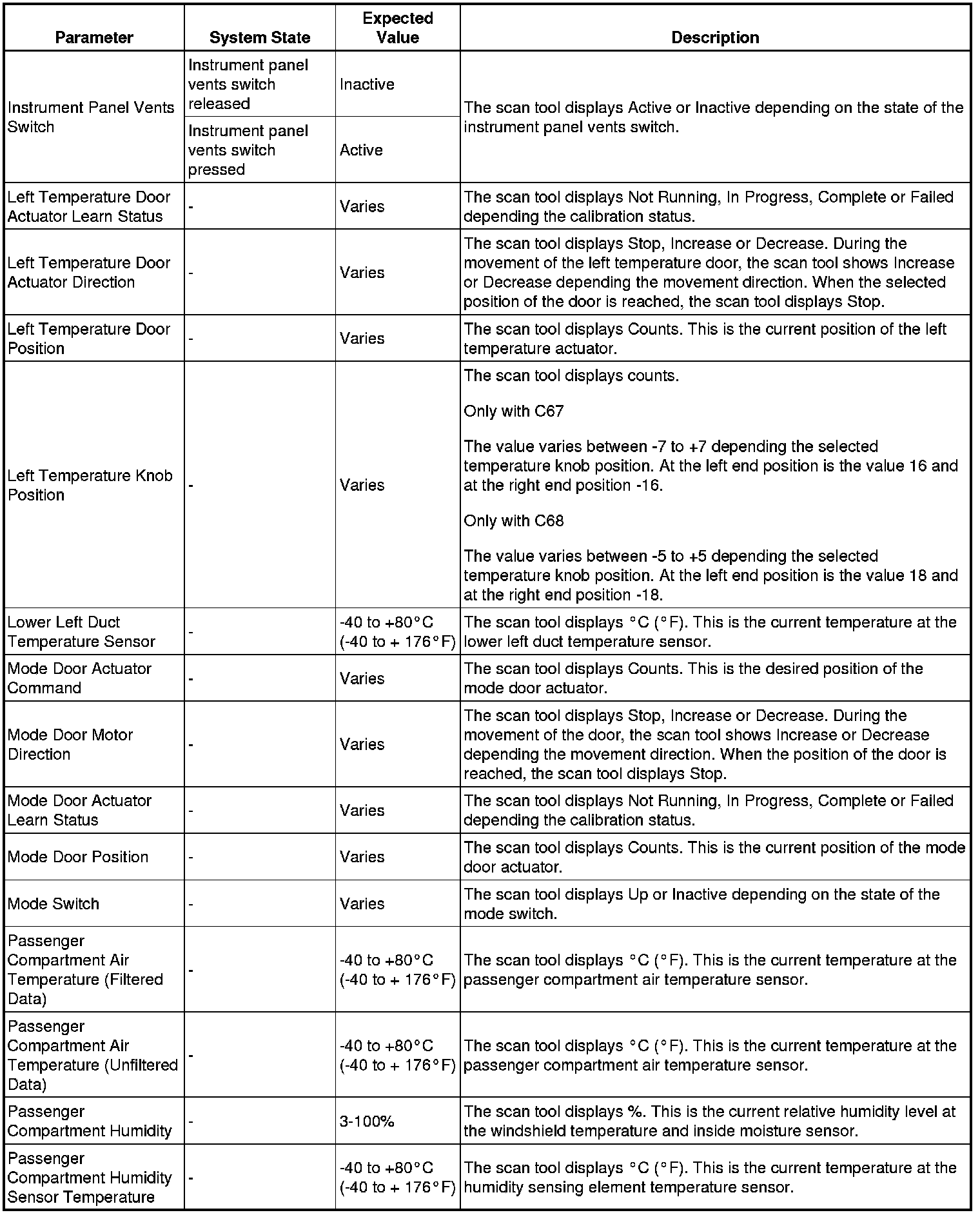 Heating, Ventilation and Air Conditioning Control Module Scan Tool Information