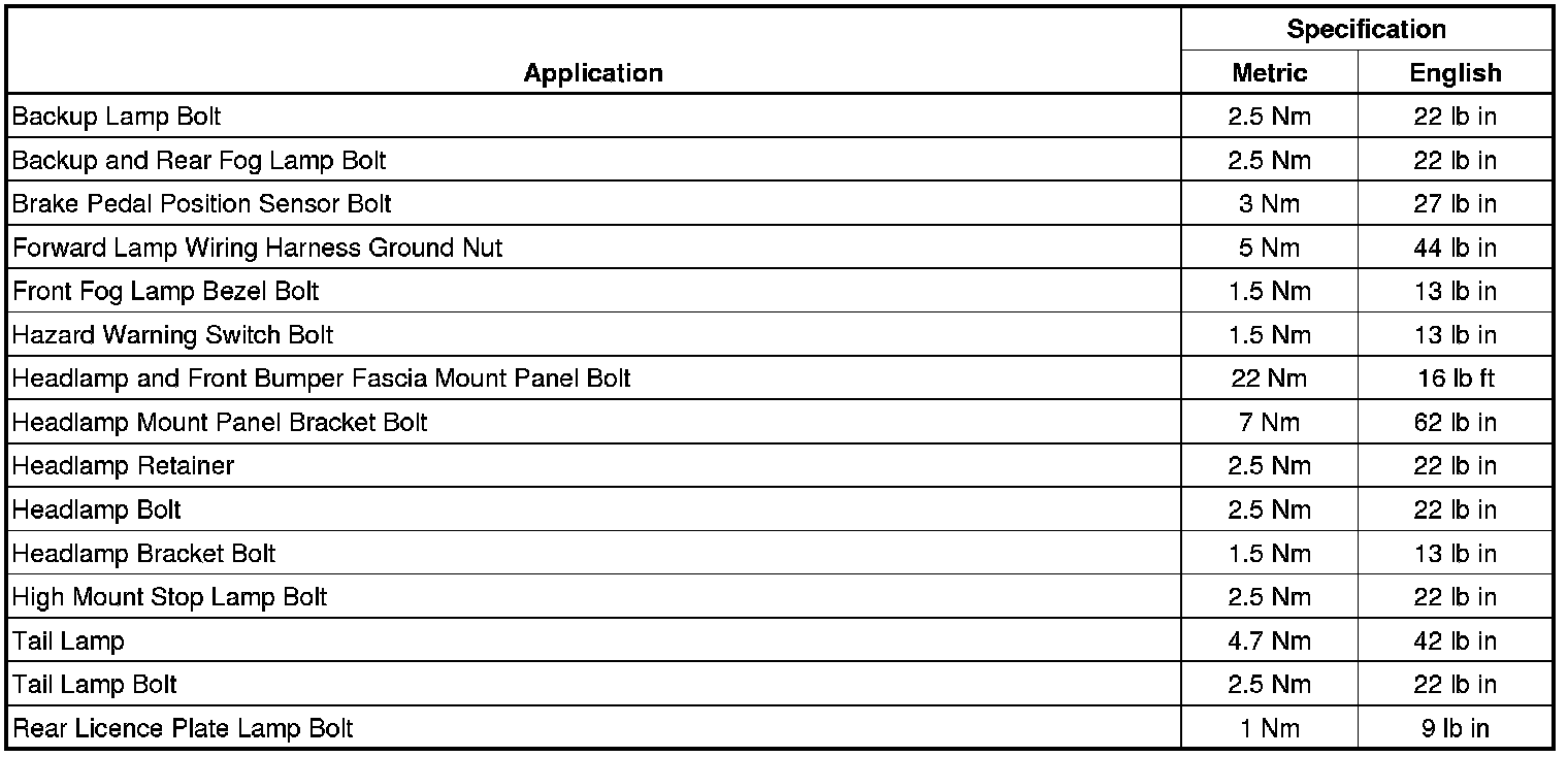 Fastener Tightening Specifications
