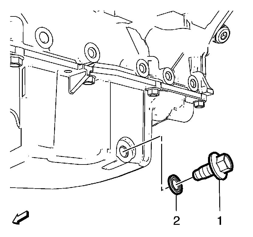 1. Install the oil drain plug (1) with the oil drain plug seal ring (2) and tighten to 25 Nm (18 lb ft).