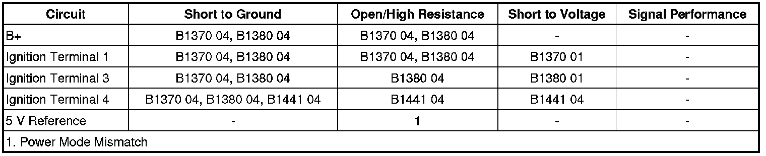 7. Verify a test lamp illuminates between each of the ignition circuits listed below and ground: