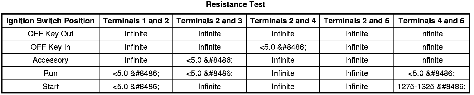 2. Using the Resistance Test below, verify the resistance between the terminals listed below match for each S39 ignition switch position.