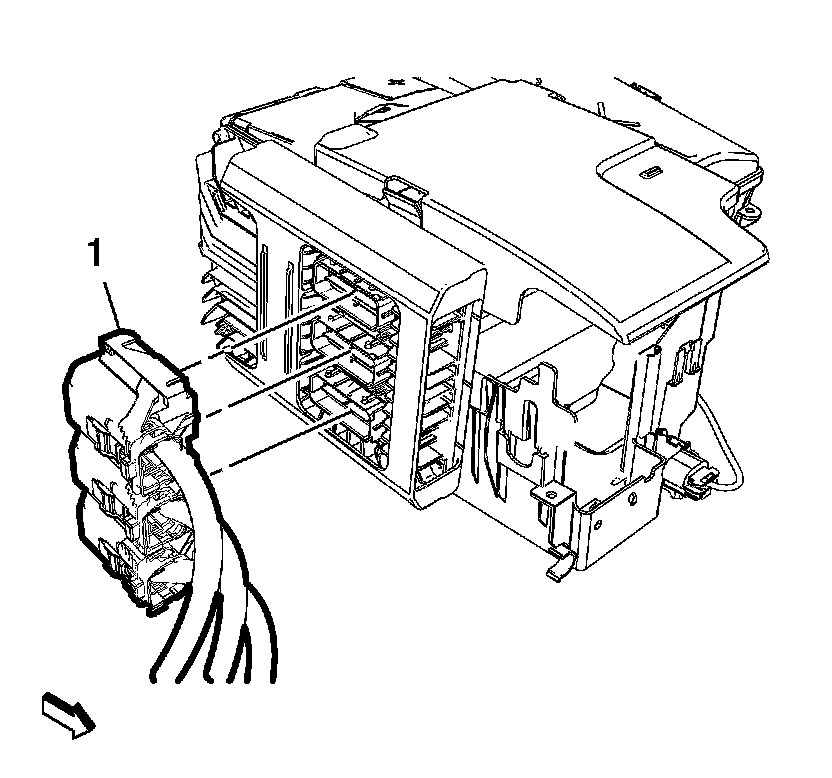 The safety locks on the ECM wiring harness plugs (1) must engage safely.