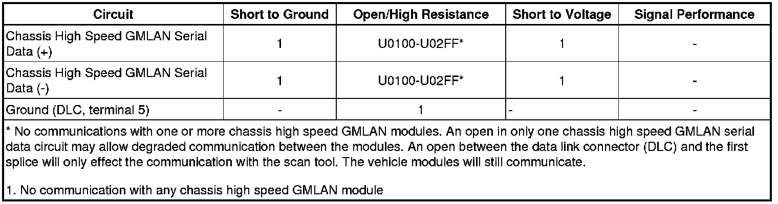 * Communication may be available between the control module and the scan tool with one or more GMLAN serial data systems inoperative. This condition is due to the control module using multiple GMLAN busses.
