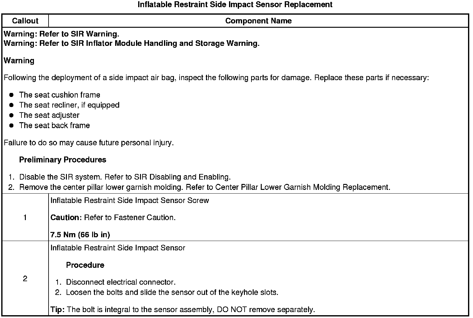 Inflatable Restraint Side Impact Sensor Replacement
