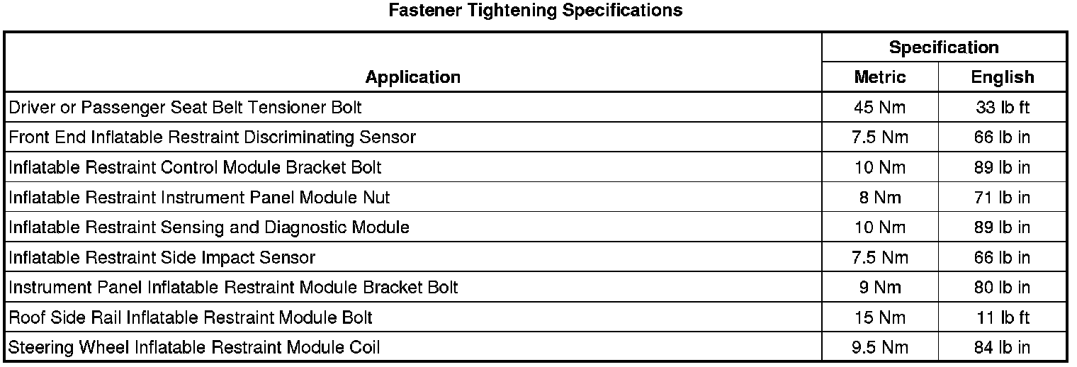 Fastener Tightening Specifications