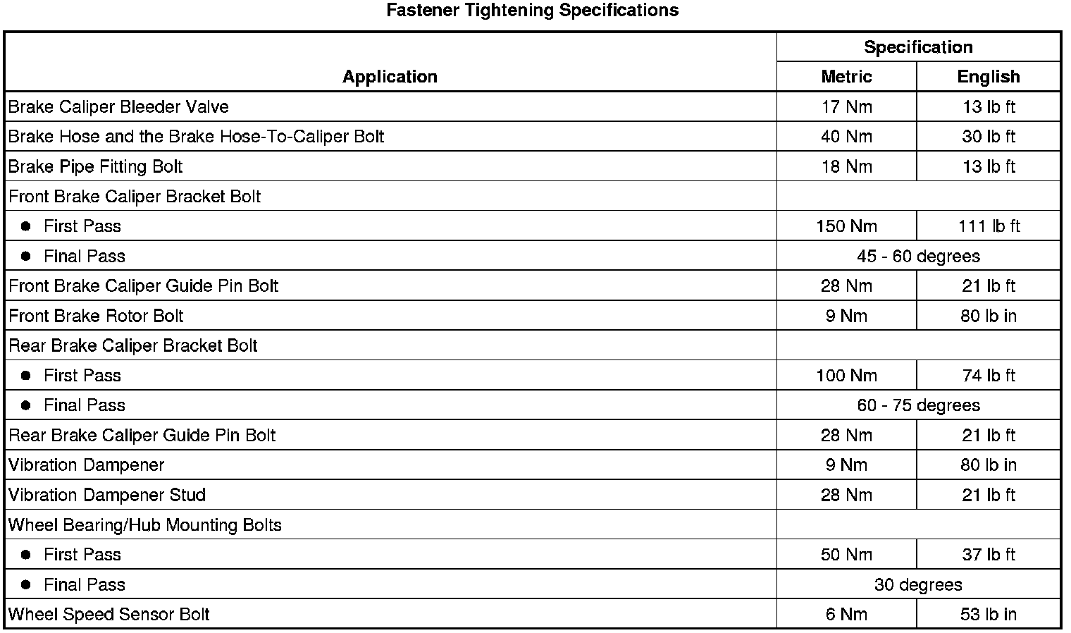 Fastener Tightening Specifications
